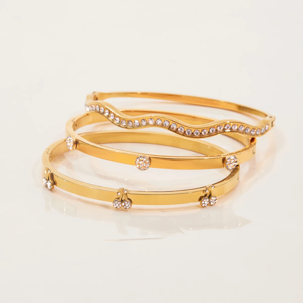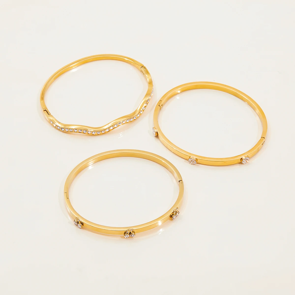 Imagine yourself confidently wearing this exquisite bangle set, effortlessly adding a touch of elegance to any outfit. Its versatile design is perfect for daily wear or special moments, helping you shine with sophistication. Crafted from stainless steel, these bangles are durable, stylish, and comfortable, ensuring you'll reach for them time and again. Whether you're dressing up for an event or accenting a casual look, this set is the perfect choice. Don’t wait—make it yours today and enjoy the confident, fashionable feel that comes with wearing high-quality jewelry made just for you!