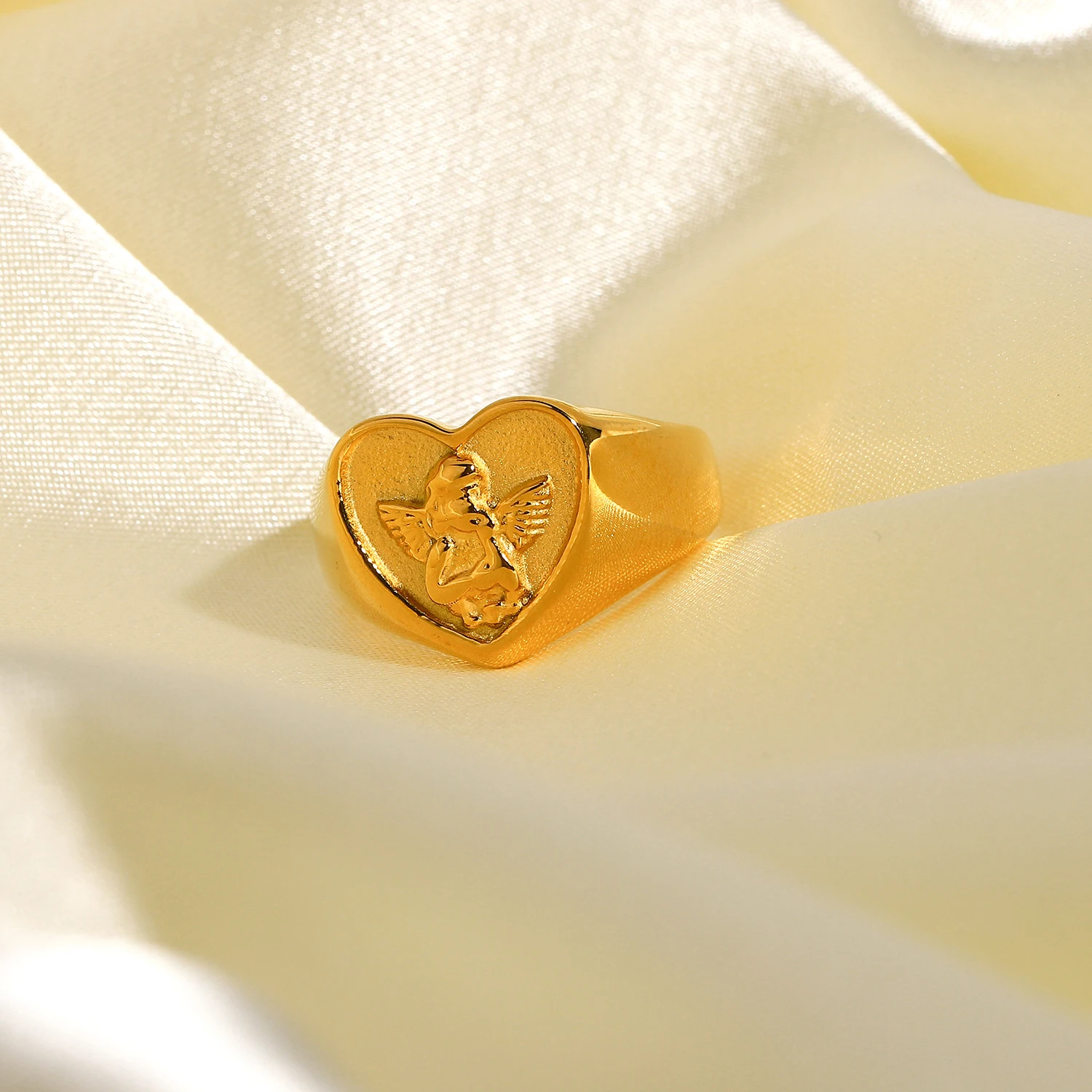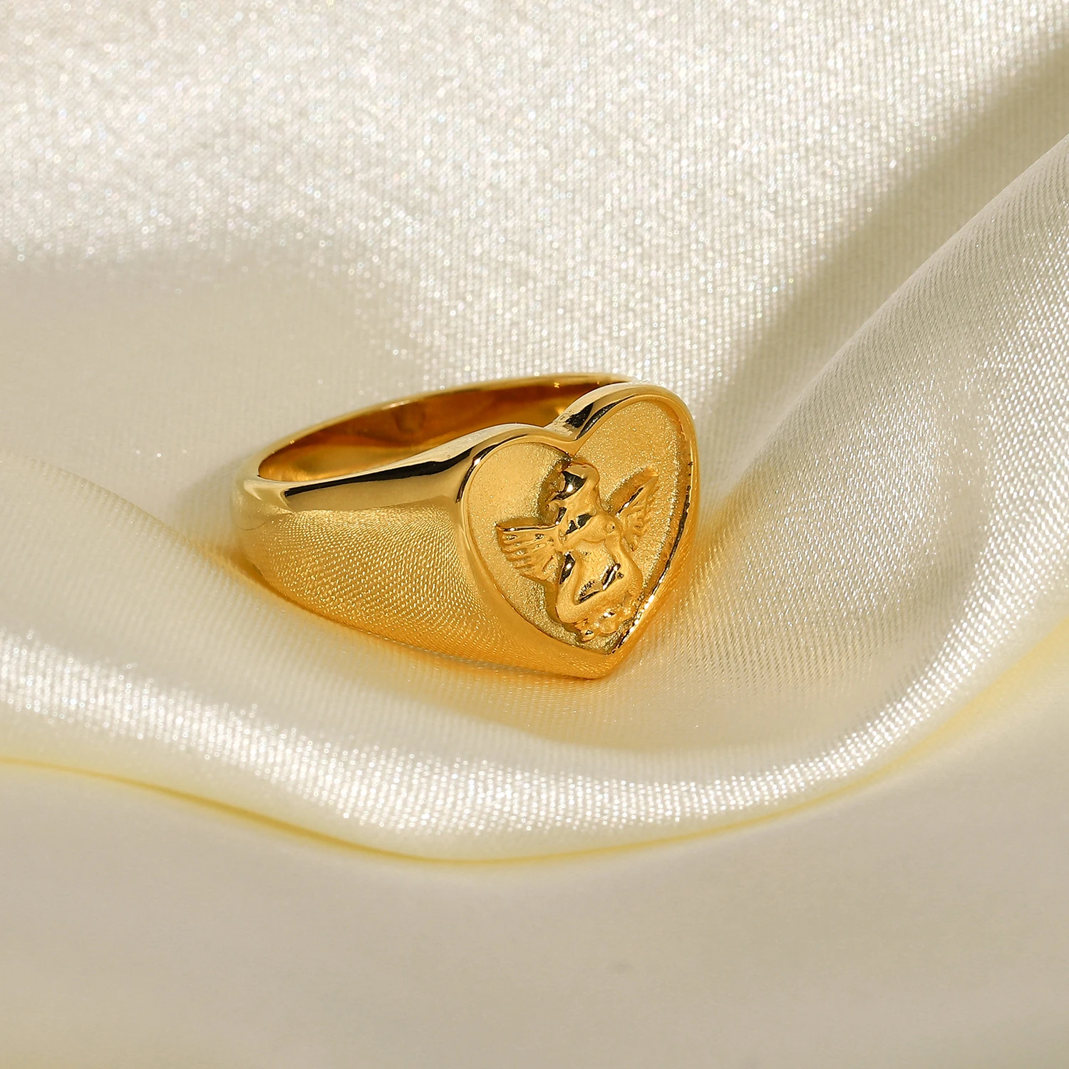 Enhance your jewelry collection with this stunning stainless steel heart-shaped angel ring, featuring a luxurious PVD gold finish that resists fading and scratches. Weighing approximately 15 grams, it is available in sizes 6, 7, and 8, perfect for all-day wear. The geometric design adds modern elegance, complemented by the inlaid opalescent or iridescent main stone that subtly shifts color for a touch of sophistication. Waterproof and free of nickel, lead, and cadmium, this trendy statement piece is ideal for parties or fashionable outings, allowing you to express your unique style with confidence.