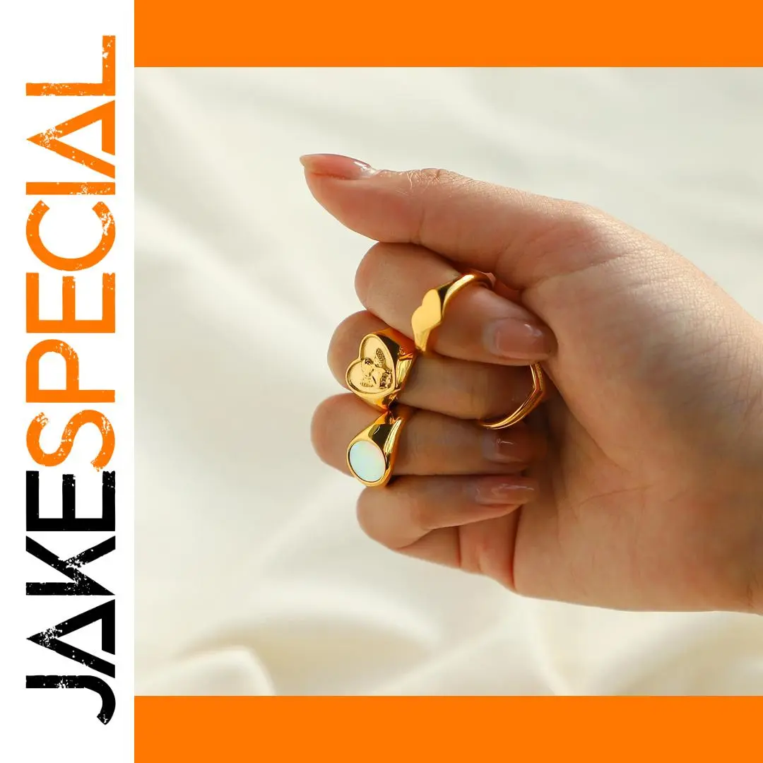 Elegant Stainless Steel Gold-Tone Heart Ring Set
