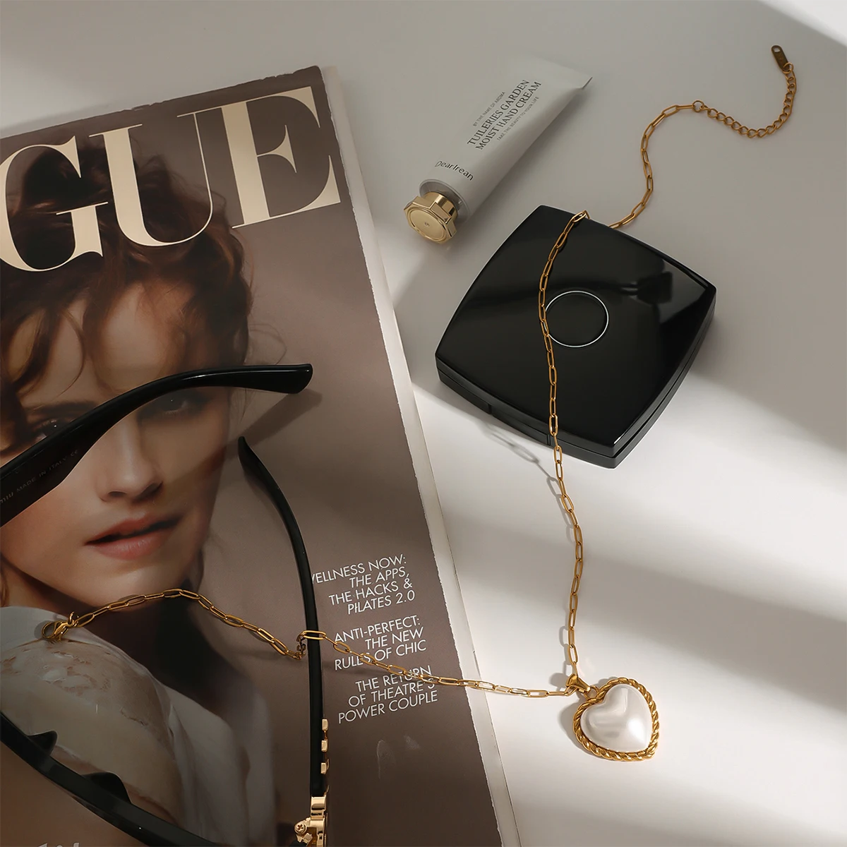 Experience timeless elegance with this women’s heart-shaped pearl necklace, crafted from durable PVD stainless steel. The gold-tone finish ensures stunning longevity, remaining bright and scratch-resistant for years. Its large, lustrous heart pendant with an iridescent white pearl-like finish captures attention effortlessly, perfect for elevating both casual and formal outfits. The delicate link chain complements the pendant beautifully, sitting comfortably around your collarbone. Designed for versatility, this necklace is waterproof and hypoallergenic, free from nickel, lead, and cadmium, making it safe and suitable for everyday wear. Whether for a gift or a personal treat, indulge in a piece that combines romance with modern style, ensuring you always shine with confidence.