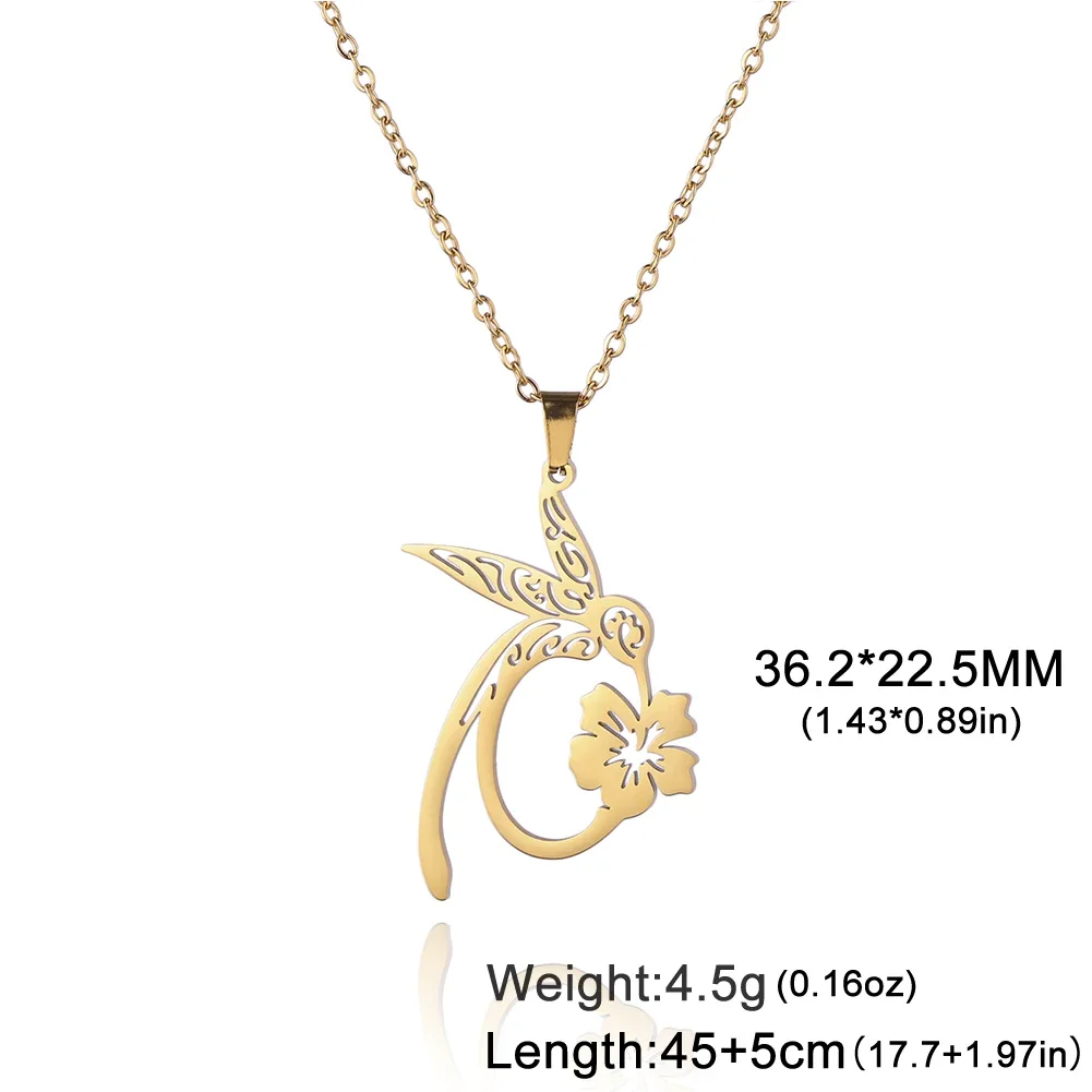 Discover the exquisite beauty of this stainless steel hummingbird and flower necklace, crafted with meticulous detail and a refined aesthetic. Featuring a polished, luminous finish, this jewelry piece blends nature-inspired motifs with contemporary design, making it a versatile accessory for any occasion. You’ll appreciate the durability of high-quality stainless steel, which resists rust and corrosion, ensuring long-lasting shine and comfort. The adjustable chain, measuring approximately 45 cm with a 5 cm extension, provides a perfect fit for your neckline. Whether choosing the warm gold-tone or sleek steel finish, this necklace captures elegance, delicacy, and personal style. It's ideal for daily wear or special events, elevating your look effortlessly.