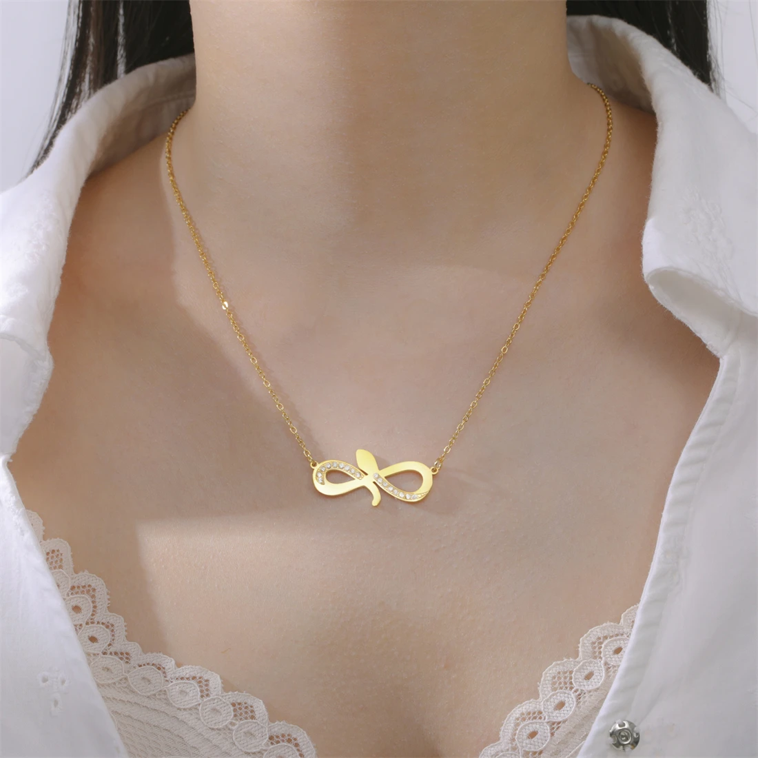 Embrace elegance and durability with this beautiful stainless steel infinity necklace. Its refined design and sparkling details will make you stand out at any occasion. Whether as a gift or to elevate your daily style, this piece offers both luxury and resilience. Imagine yourself wearing it confidently, knowing it will last through countless memories, celebrations, and heartfelt moments. Invest in a timeless accessory that symbolizes infinity and your unique beauty—act now and add this exquisite necklace to your jewelry collection today!