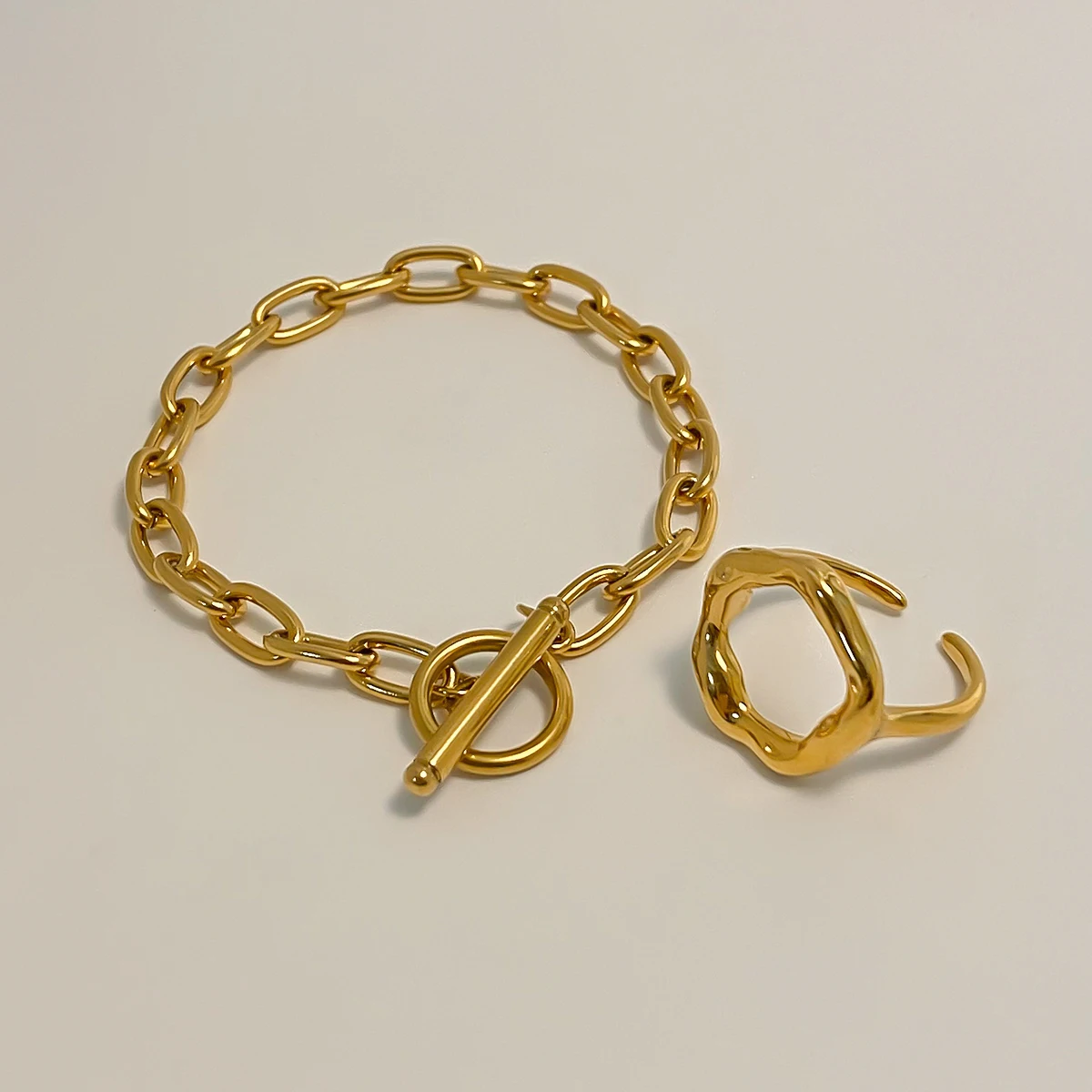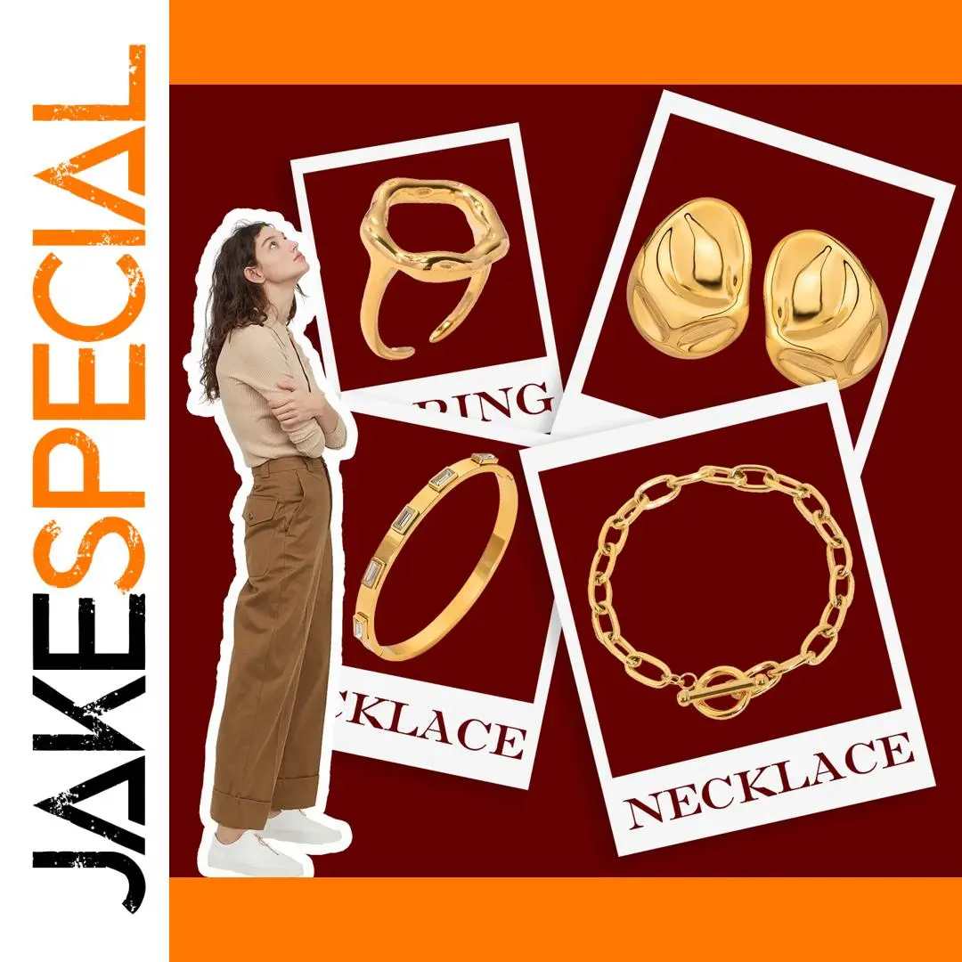 Treat yourself today by adding this stunning jewelry set to your collection. Its trendy design, durable construction, and versatile pieces will elevate your everyday look or complement your special outfits beautifully. Thanks to high-quality stainless steel with PVD gold, these pieces will stay radiant and scratch-free for years. Whether gifting or personal indulgence, this set offers an elegant and reliable accessory option. Imagine yourself wearing these captivating pieces, feeling confident and fashionable at every occasion. Don't miss out—embrace the chic, modern style that this jewelry set brings to your wardrobe today!