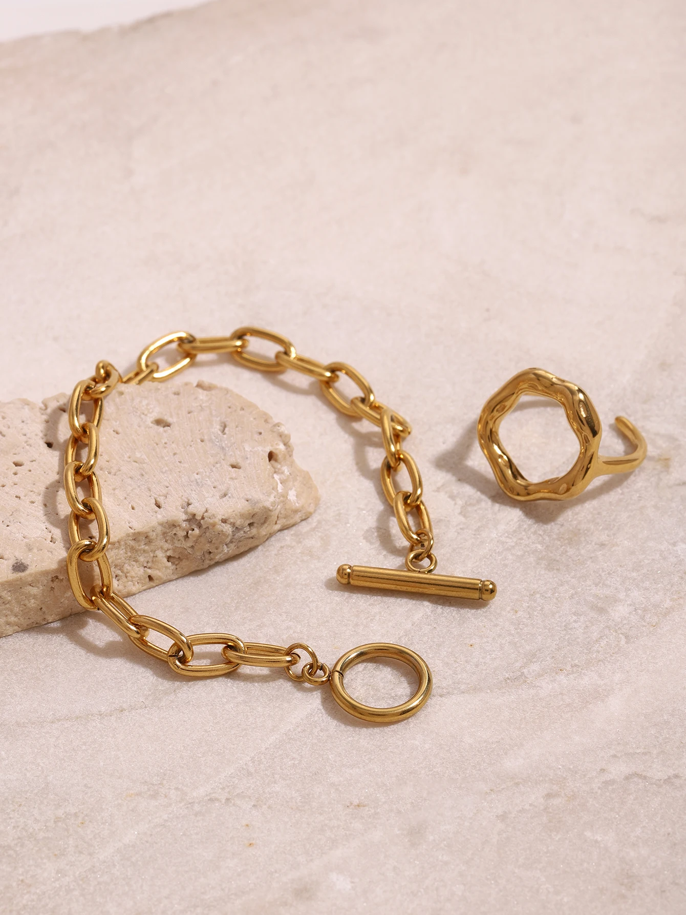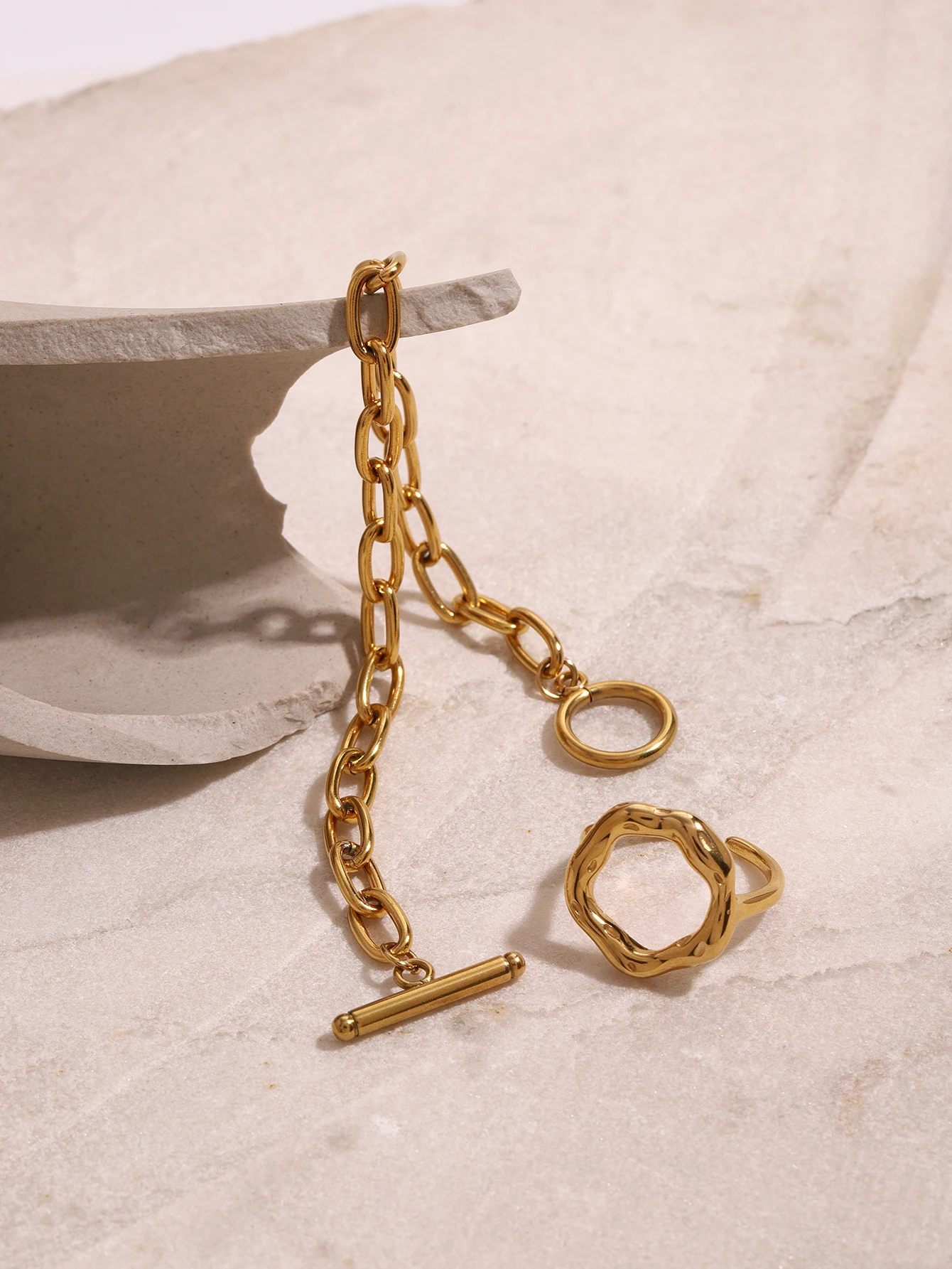 - Includes oversized textured earrings, a sleek zircon-studded bracelet, layered chain necklace, adjustable ring, and a stylish open band — perfect for daily wear or special occasions.