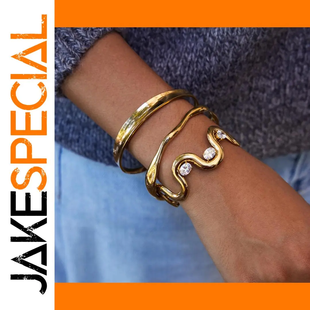 Immerse yourself in the sophisticated charm of these modern bracelets crafted from durable stainless steel with a striking platinum-colored finish. Designed specifically for women, this collection combines sleek, minimalist styles with luxurious details. The smooth, rounded bangle offers a timeless look, while the elliptical open bracelet adds a contemporary touch with its shiny surface. The unique, irregular-shaped bangle features a serpent-inspired design, elegantly accented with three white zircon stones set in prong settings that catch the light beautifully. These bracelets are waterproof, making them perfect for everyday wear or special occasions. With their high-polish finish, they reflect light brilliantly, adding a touch of elegance to any outfit. You’ll appreciate how effortlessly they elevate your style with durability and class.