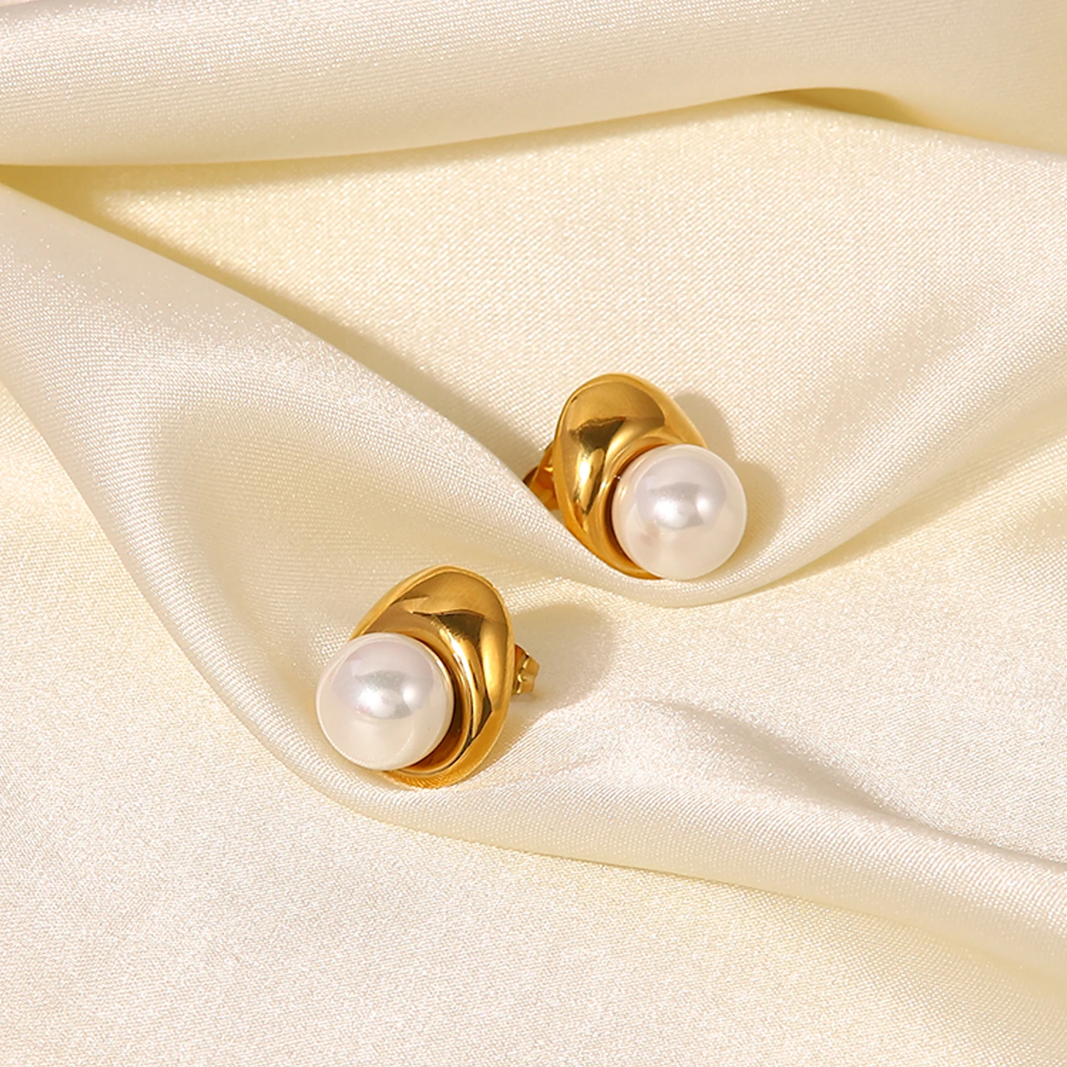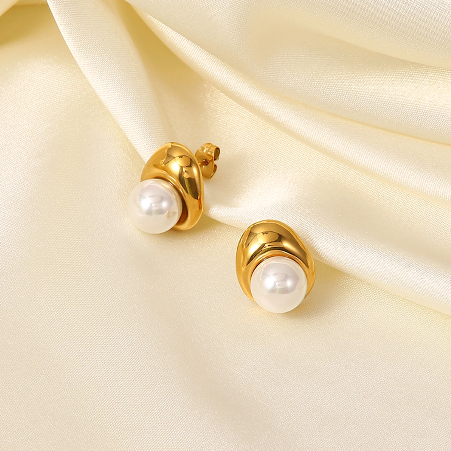 - Design features a large, luminous pearl set within a shiny, gold-colored metal cap, embodying classic beauty and modern glamour.