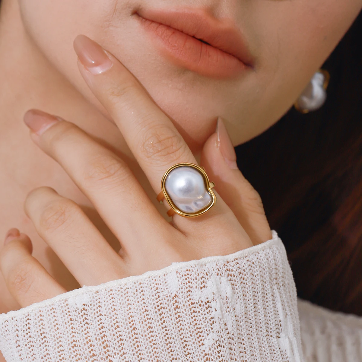 Imagine elevating your style effortlessly with this stunning jewelry set featuring a harmonious blend of modern geometric design and organic elegance. Crafted from durable stainless steel with a luxurious gold-tone finish, each piece showcases large, lustrous baroque imitation pearls with unique irregular shapes. The set includes a delicate necklace, versatile rings, and distinctive earrings—combining minimalist square and rectangular frames with freeform pearl clusters. Whether you're dressing up for an evening event or adding a sophisticated touch to everyday wear, this collection offers versatility and timeless beauty. Feel confident knowing each piece is designed to capture attention and reflect your personal style, making every moment feel special.