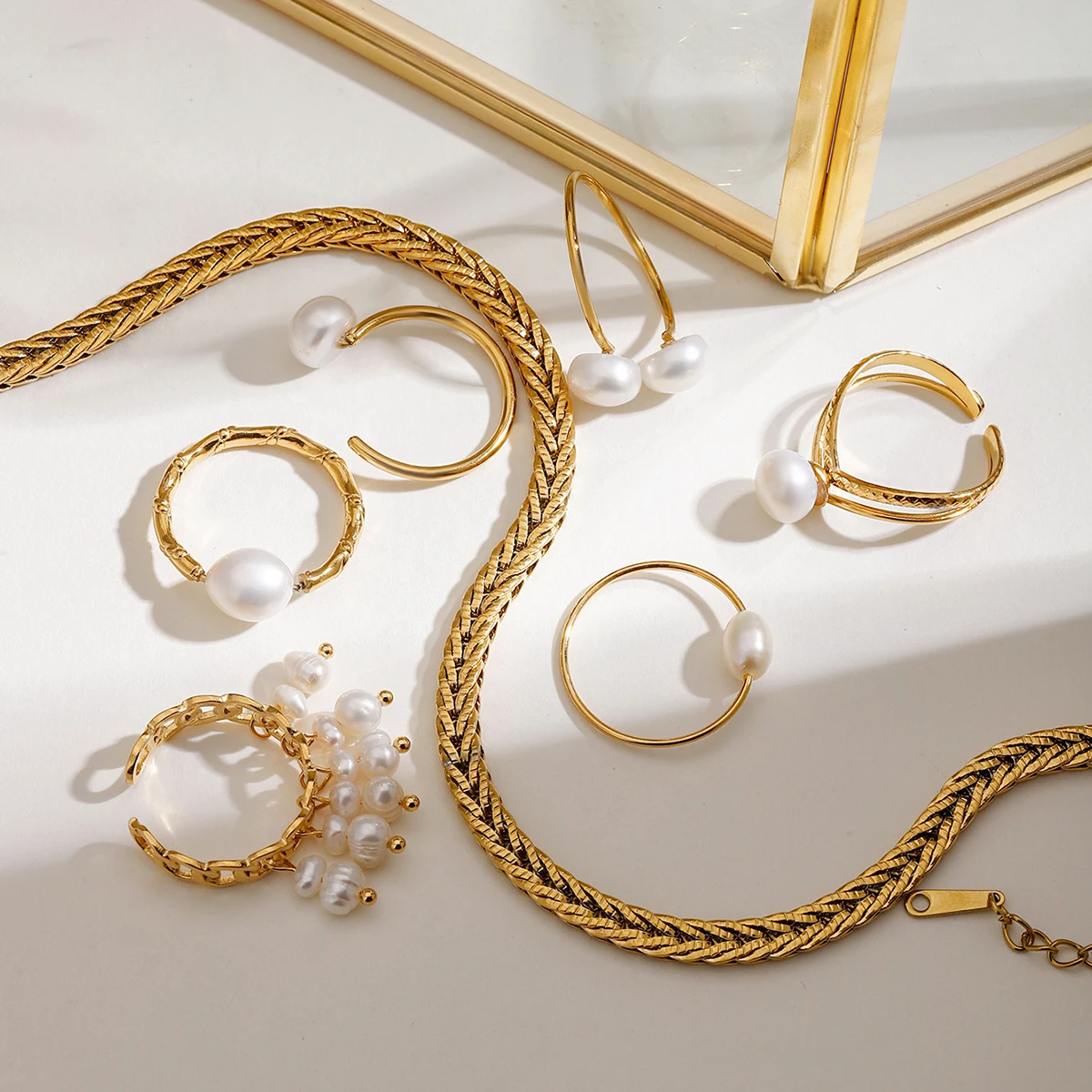 Imagine yourself confidently wearing this exquisite piece, adding a touch of elegance to any look. Its versatile, minimalist design makes it perfect for everyday wear or special celebrations. Durably crafted from stainless steel with a PVD gold finish, this ring guarantees long-lasting shine and resistance to wear. Whether stacking with other rings or standing out on its own, it’s a beautiful and reliable choice for any jewelry lover. Elevate your collection today with this sophisticated and fashionable pearl ring, crafted to match your unique style and personality.