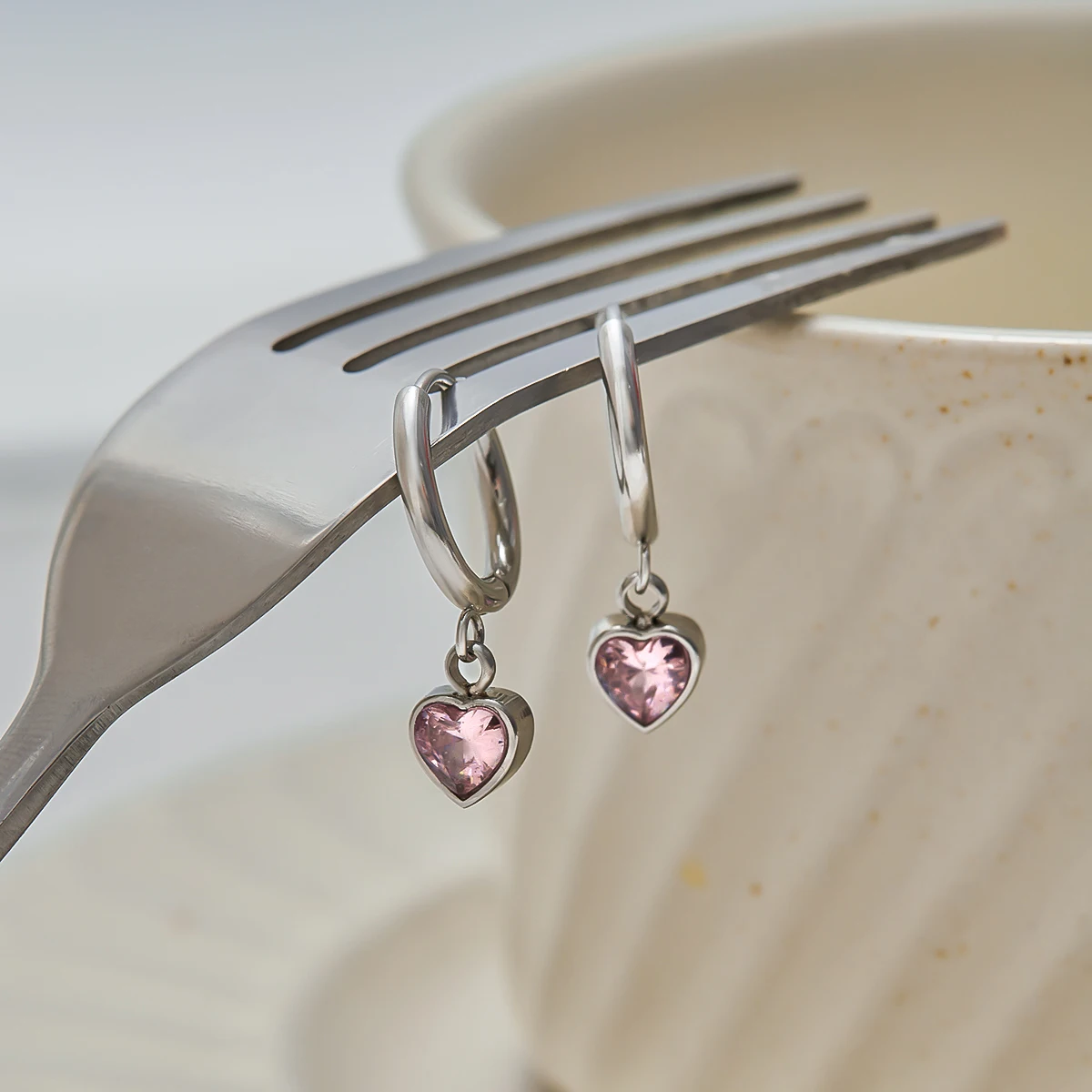Imagine elevating your look with these stunning minimalist water drop earrings, crafted from durable stainless steel with a sleek platinum finish. Designed with sophistication, each pair features a delicate hoop measuring 20mm in length and 15mm in width, perfect for adding a touch of elegance to your everyday style or special occasions. The standout feature is the charming heart-shaped pink zircon stones, which dangle freely in a teardrop shape, creating a vibrant contrast against the shining metallic surface. These earrings radiate modern femininity, blending trendy fashion with timeless charm, making you feel confident and elegant whenever you wear them. Whether for yourself or as a thoughtful gift, these accessories promise to impress.