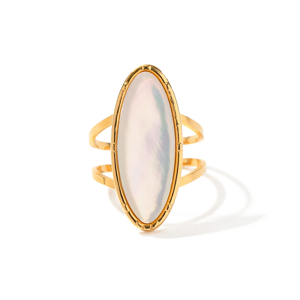 This exquisite shell ring seamlessly combines natural beauty with modern craftsmanship. Perfect for adding a unique statement to your daily outfits or complementing your evening attire, it's designed to make you feel confident and stylish. Whether you're treating yourself or searching for an exceptional gift, this versatile piece adapts effortlessly to any setting. Its high-quality stainless steel construction ensures lasting shine and comfort, while its subtle yet eye-catching iridescent shell centerpiece creates a sophisticated touch. Embrace timeless elegance and natural charm—order yours today and enjoy wearing a piece that truly reflects your unique style.