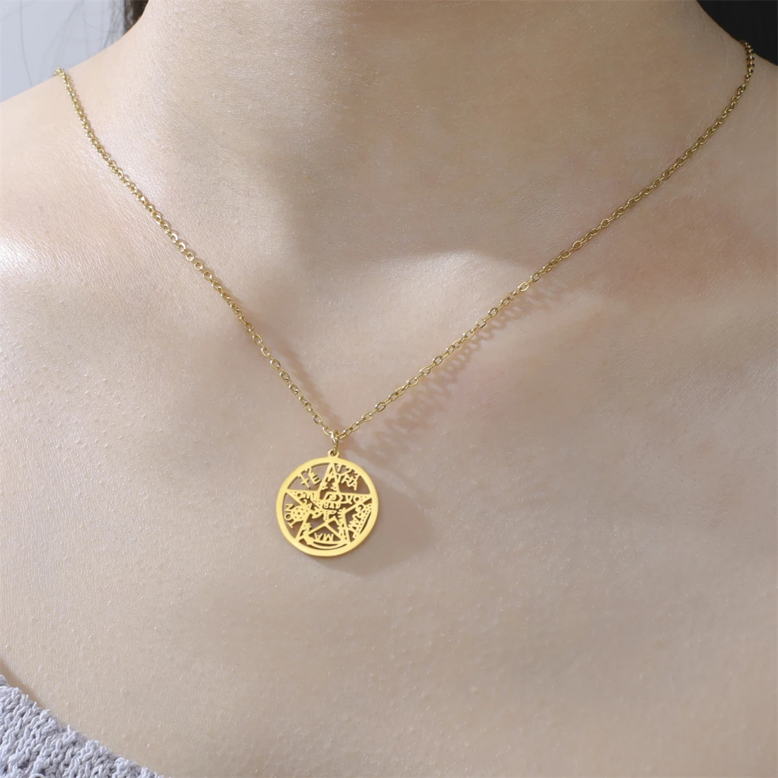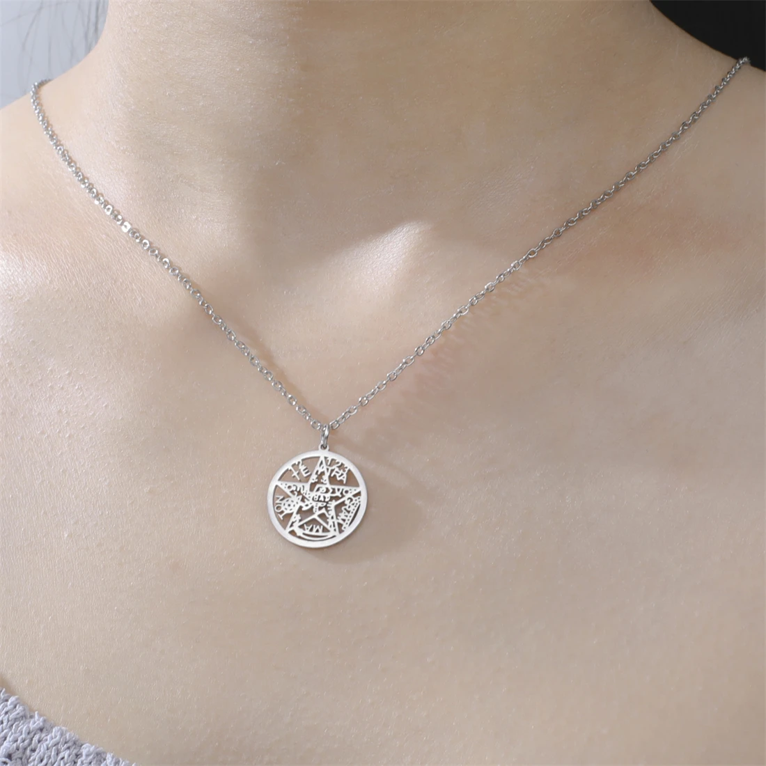 Imagine highlighting your personal style with this elegant necklace that perfectly captures your mystical and modern tastes. Whether for a birthday, anniversary, or just because, it adds a unique touch to your wardrobe. Its durable stainless steel construction guarantees lasting beauty, while the minimalist design makes it versatile enough to pair with any outfit. Embrace the blend of vintage charm and contemporary fashion—this is more than jewelry, it’s a statement of personality and faith. Order today to enjoy this exquisite piece that complements your everyday look or special moments beautifully.