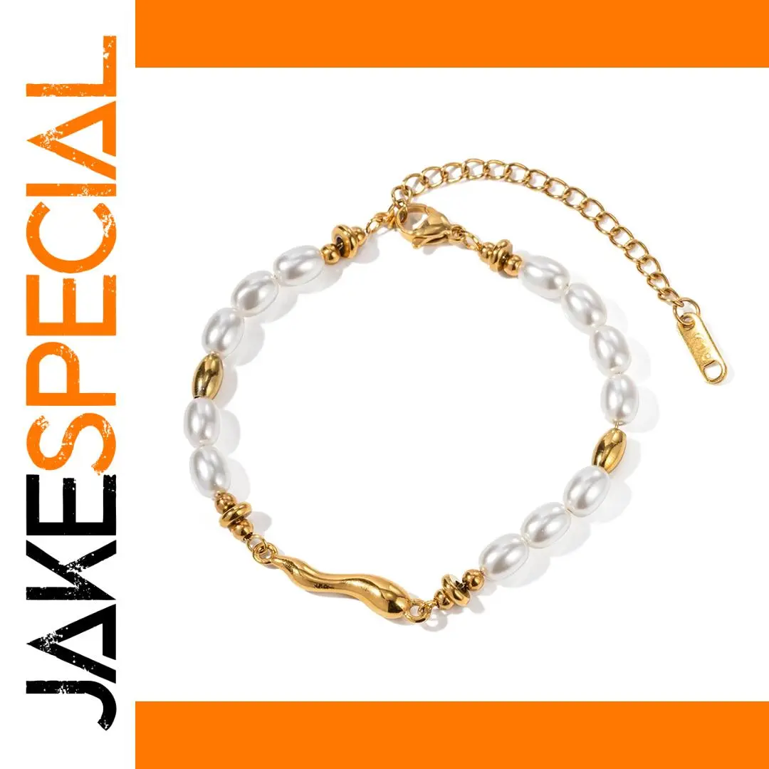 Immerse yourself in refined sophistication with this exquisite water drop-shaped bracelet. Crafted from high-quality stainless steel, it boasts a polished, shiny finish that resists tarnishing and ensures durability. The bracelet features lustrous simulated near-round pearls arranged in a sleek water drop motif, creating a balanced blend of modern and classic aesthetics. The organic, elongated gold-colored metal central element adds a graceful focal point, elevating the overall design. Its adjustable chain with linked oval loops and a secure lobster-claw clasp guarantees a comfortable, personalized fit. Perfect for summer outings or formal events, this bracelet resists water and humidity, maintaining its luminous shine and beauty through daily wear, reflecting your confident, stylish personality.