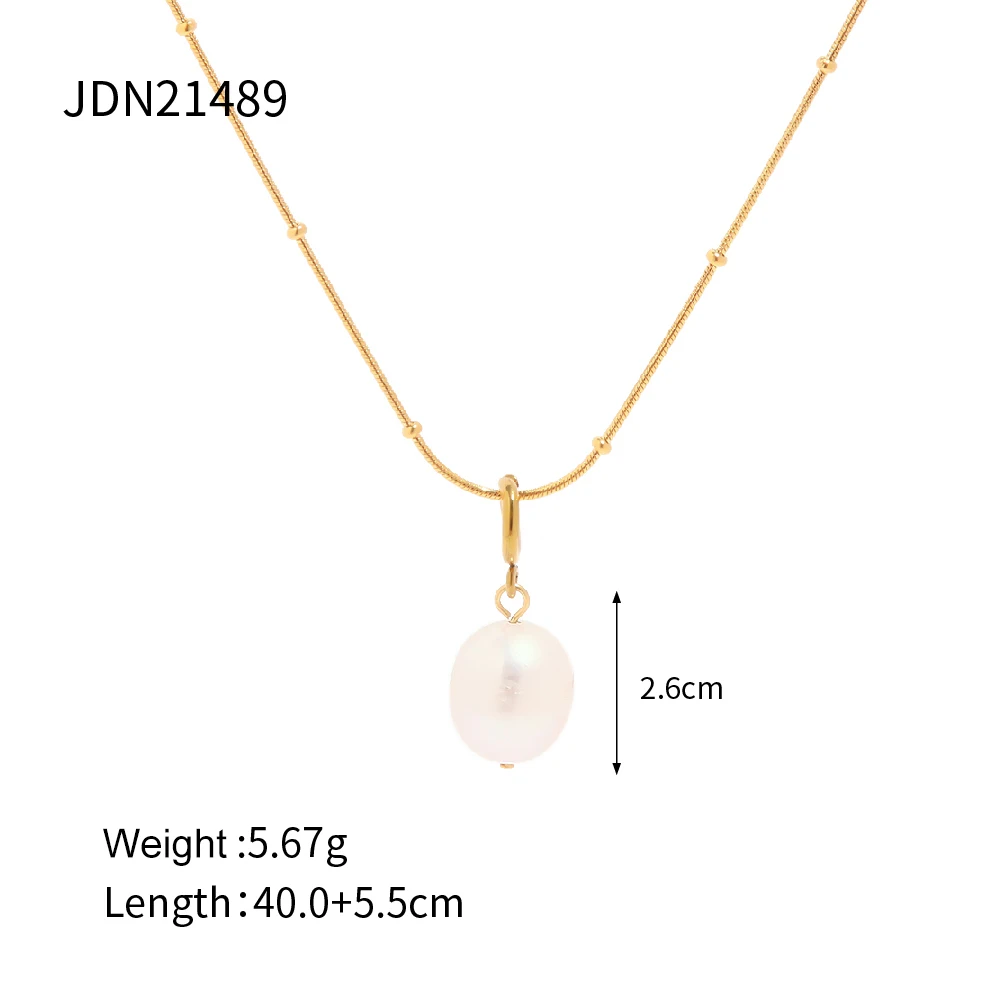 Imagine elevating your style effortlessly with this stunning women's pendant necklace. Crafted from durable stainless steel with a luxurious PVD gold coating, it maintains its radiant shine for years without fading or scratching. The 394+63mm elongated link chain creates a layered, trendy look that complements various outfits. At the center, a smooth oval freshwater pearl adds a touch of natural elegance, with a creamy white hue and subtle iridescence perfect for any occasion. Light as a feather at approximately 15 grams, this necklace offers both style and comfort. Its waterproof, nickel-free design makes it ideal for daily wear, seamlessly blending fashion with practicality. You’ll love how it makes your ensemble stand out with a subtle yet sophisticated charm.