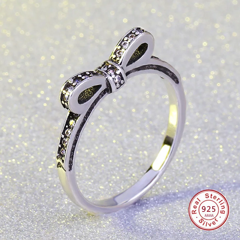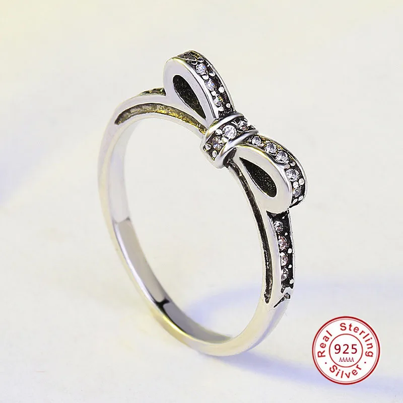 Enhance your jewelry collection with this romantic and feminine stackable ring crafted from 925 sterling silver and plated for added shine. Featuring a charming bowknot design adorned with AAA cubic zirconia stones in a prong setting, it captures light beautifully for a dazzling effect. Available in surface widths of 2mm, 3mm, 6mm, 6.5mm, and 16mm, and in sizes 5 to 10 (lengths from 49.3cm to 62.1cm), this versatile piece is perfect for engagements, anniversaries, or a special gift. Its elegant, delicate style brings a graceful touch to any occasion, making it an essential addition for those who appreciate refined jewelry with a romantic flair.