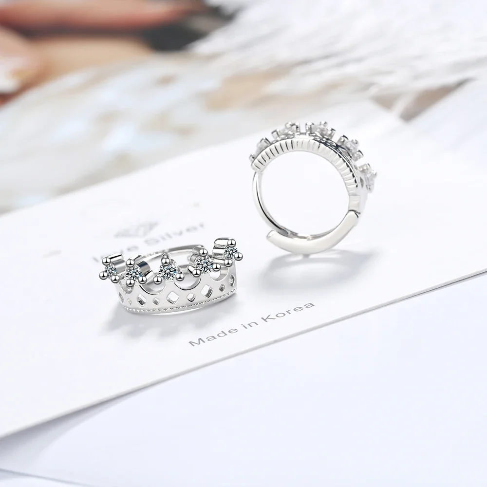 Step into sophistication with this exquisite pair of earrings, crafted from 925 sterling silver with the model number E0699. Designed with a delicate hollow wave pattern, these earrings boast a regal crown shape, perfect for adding a touch of femininity and elegance to your daily wardrobe. Accentuated with tiny sparkling zircon stones, they capture light beautifully, enhancing their radiant and refined look. Weighing only around 2 grams, they offer lightweight comfort for all-day wear. The polished finish lends a sleek and shiny appearance, making these earrings suitable for various occasions, especially professional and office environments. Their intricate and airy design creates a versatile accessory that pairs well with both casual and formal outfits, elevating your style effortlessly.