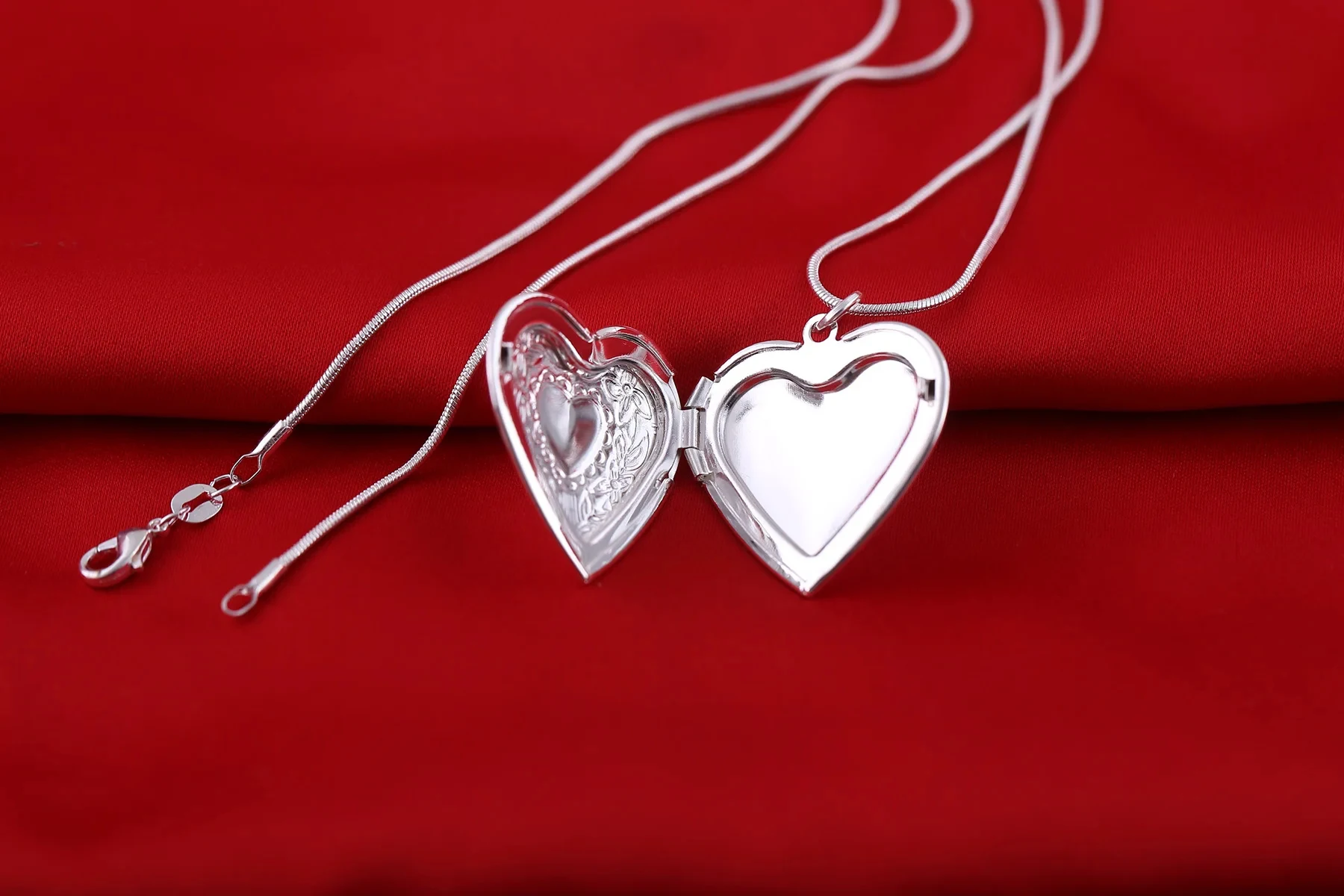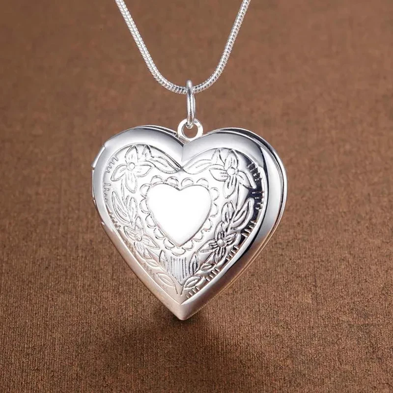 Imagine adorning yourself with this stunning silver heart-shaped pendant necklace, perfectly designed to enhance your romantic and cute style. Crafted from high-quality 925 sterling silver, it offers a polished, shiny finish that captures light beautifully. The 45 cm (18-inch) snake chain complements the delicate yet elegant look, making it ideal for special occasions like parties, weddings, or meaningful gifts. The heart-shaped pendant features intricate engraved floral and leaf motifs surrounding an empty central heart, infusing a romantic charm. Weighing just 11 grams, it feels light yet durable, ensuring comfort without compromising style. Its certified REACH standard guarantees safety and quality, making this jewelry piece as trustworthy as it is beautiful, ready to be treasured and shared with loved ones.
