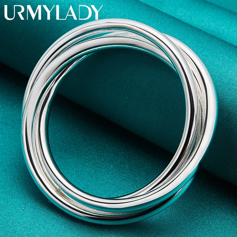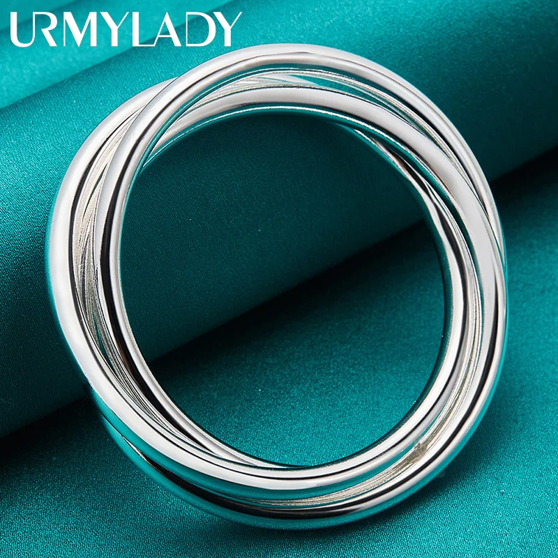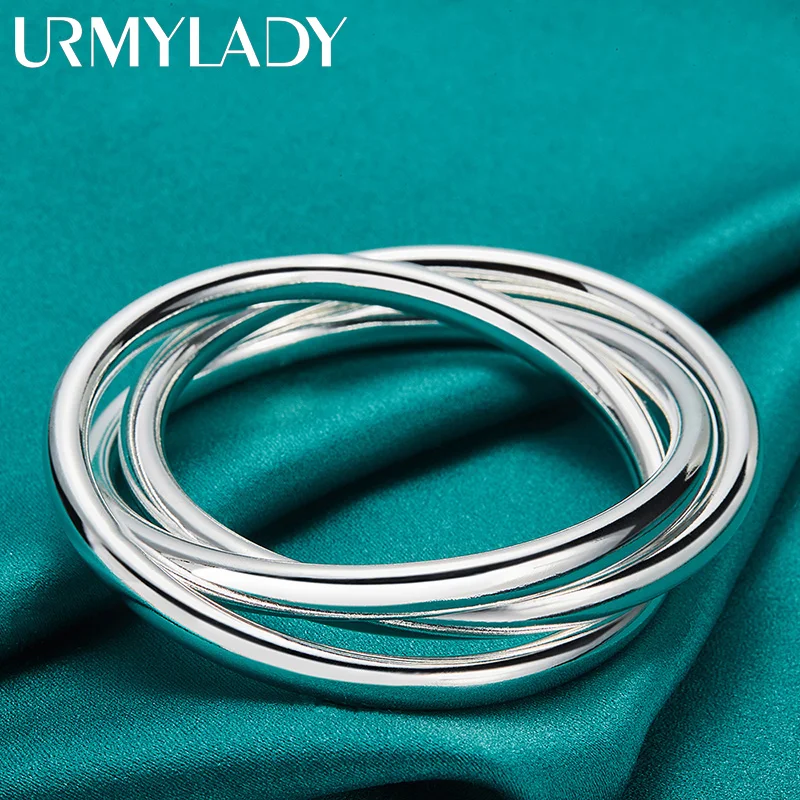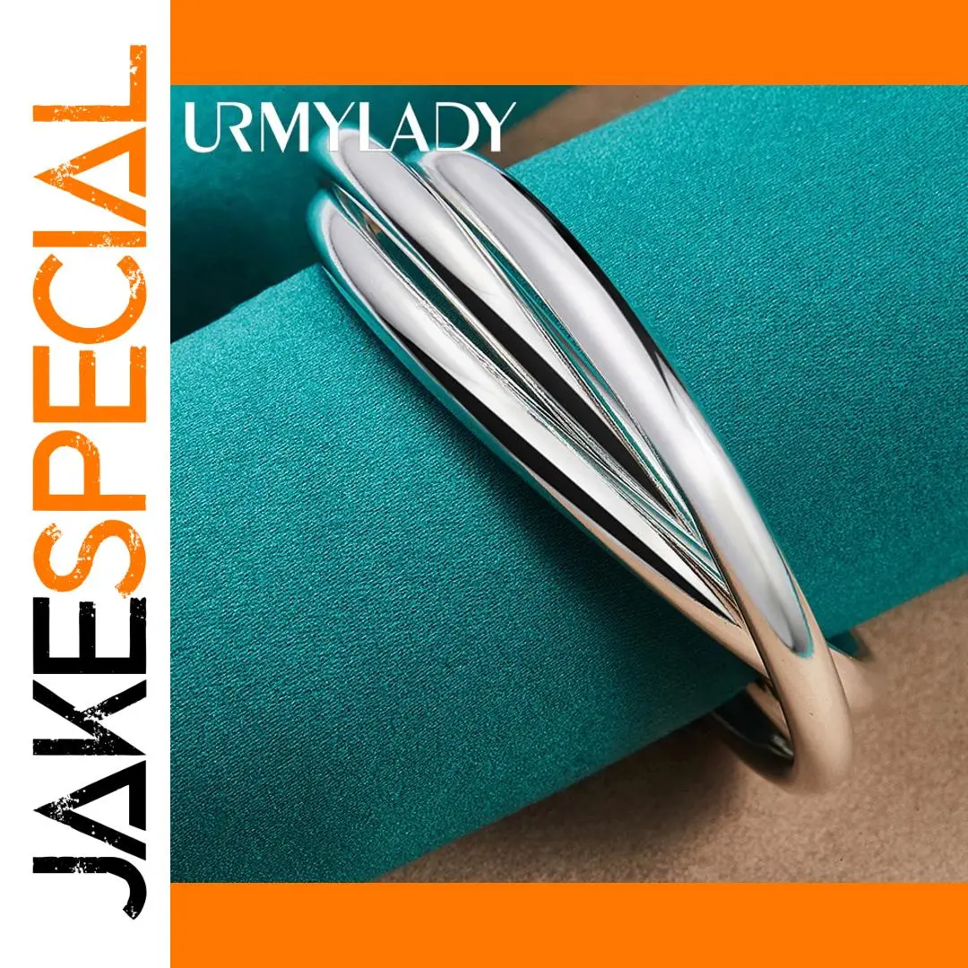 Discover the timeless sophistication of this this elegant silver bracelet, crafted from high-quality 925 sterling silver. Featuring three interconnected, perfectly smooth round rings, its minimalist design exudes refined elegance. The highly polished surface reflects light beautifully, adding a luminous touch to your wrist. Weighing 48.50 grams, this bracelet boasts a sturdy yet comfortable feel, ideal for special occasions such as weddings, engagements, or everyday wear. Its classic style makes it a versatile addition to any jewelry collection. Designed for women, this bangle’s magnetic closure ensures ease of wear while maintaining a sleek silhouette. Its certified GDTC quality assures durability and authenticity. Elevate your look with this beautiful piece and enjoy its subtle, sophisticated charm that complements any outfit with grace.