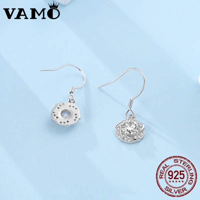 Experience the allure of these stunning women's earrings crafted from genuine 925 sterling silver, featuring a sleek, polished finish that reflects light beautifully. The design offers an organic, flowing silhouette with slightly irregular, flower-inspired shapes that evoke a sense of nature and artistry. At the heart of each earring, a luminous, round-cut zirconia gemstone (gem color code KSE125) adds a sparkling, gemstone-like brilliance. Surrounding the main stone are smaller zirconia accents that enhance the dazzling effect, creating a luxurious and eye-catching accessory. Perfect for special occasions such as weddings and anniversaries, these earrings blend modern fashion with timeless elegance, making them a refined gift and a treasured addition to your jewelry collection.