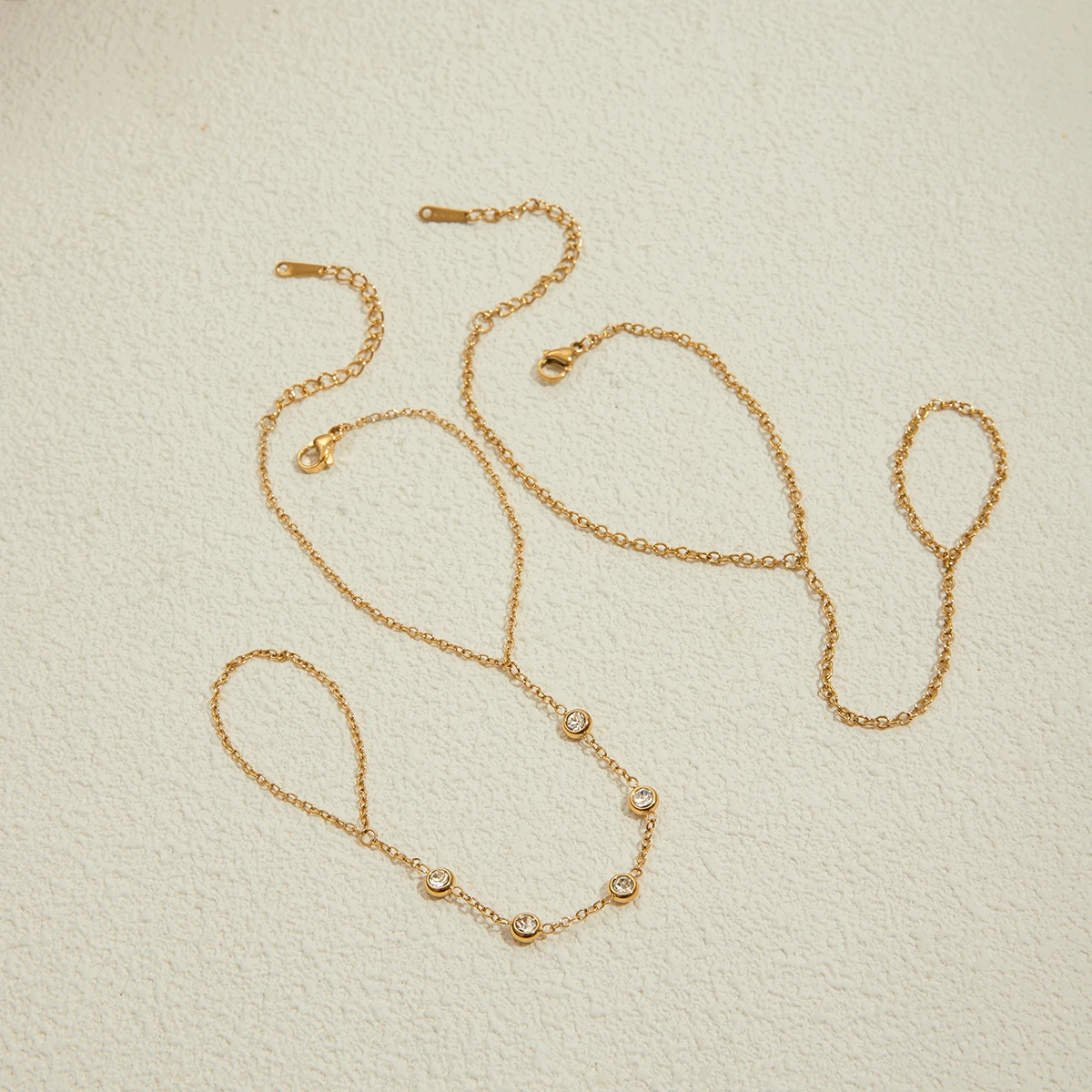 - Adorned with tiny zircon embellishments and a complementary finger design, combining simplicity with subtle sparkling accents for a refined look.
