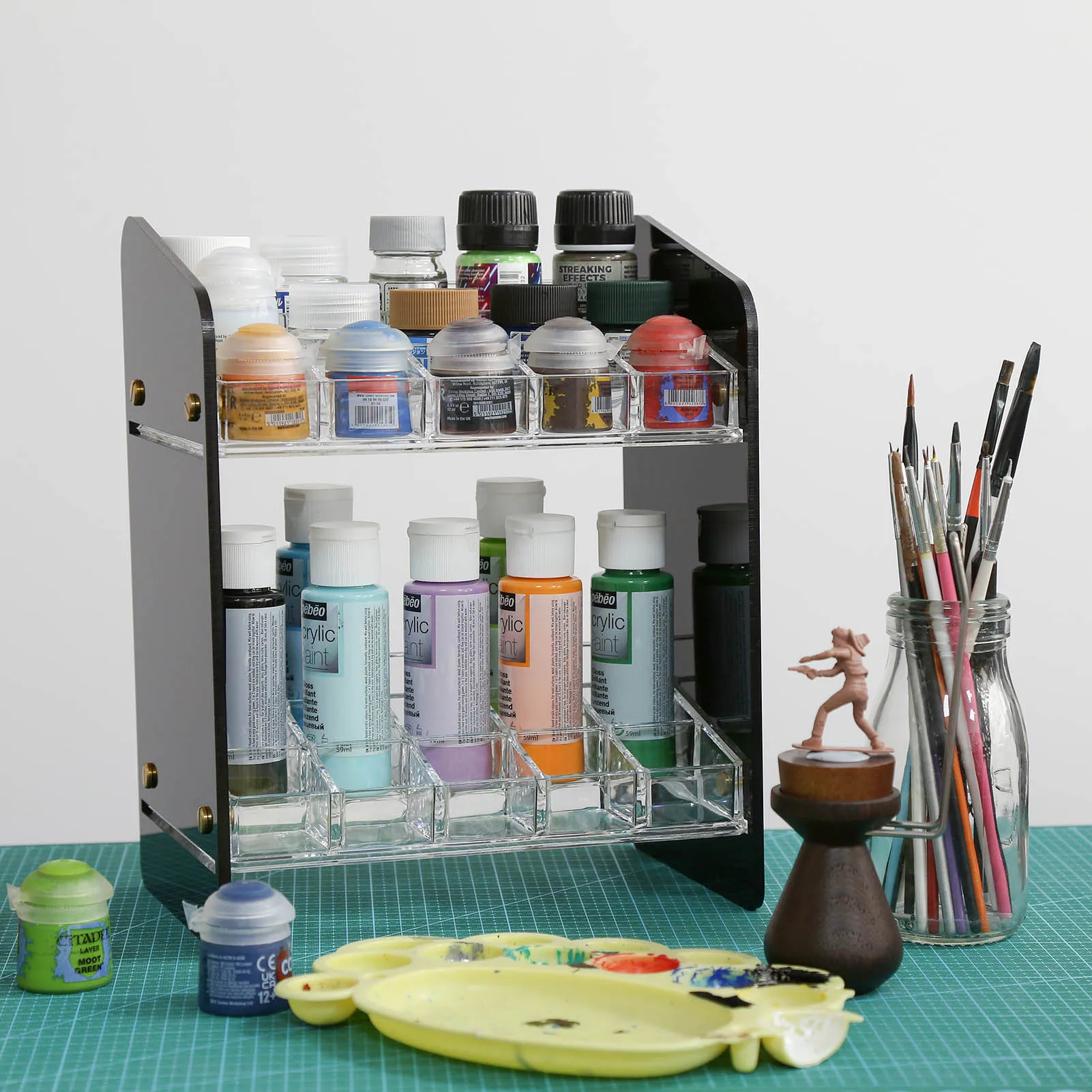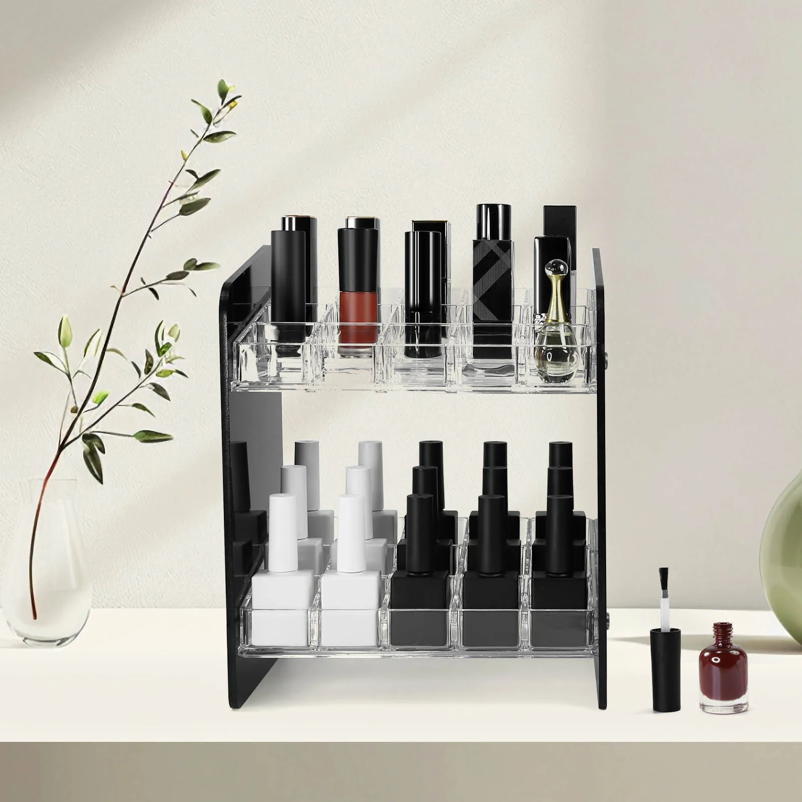 - This stylish two-layer acrylic organizer offers a modern, geometric trapezoid shape that adds visual appeal to any vanity, desk, or display area, perfect for showcasing small cosmetics and craft bottles.