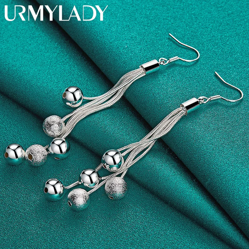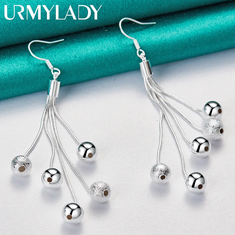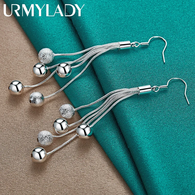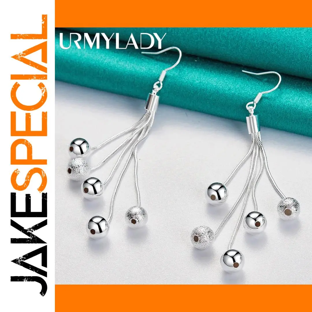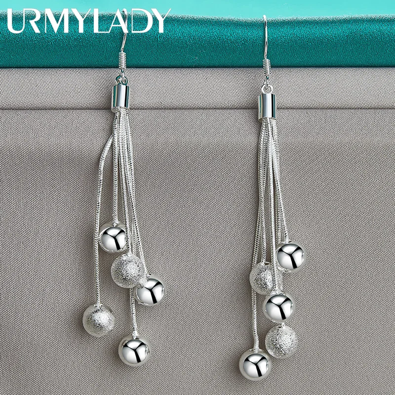 Discover the timeless charm of these URMYLADY 925 Sterling Silver Drop Earrings, designed to elevate any special occasion. Crafted with precision, they feature a multi snake chain construction with a sleek, modern aesthetic. The earrings showcase a smooth matte finish that enhances their sophisticated look, perfect for weddings, engagements, or formal events. Each earring is adorned with contrasting spherical beads—some polished, others textured—creating a captivating play of shiny and matte surfaces. Weighing 8.6 grams, they strike a perfect balance between comfort and style. The classic fishhook design ensures easy wear and an elegant silhouette. These versatile earrings promise a luxurious touch to any refined ensemble, making you look stunning and confident at all your memorable moments.