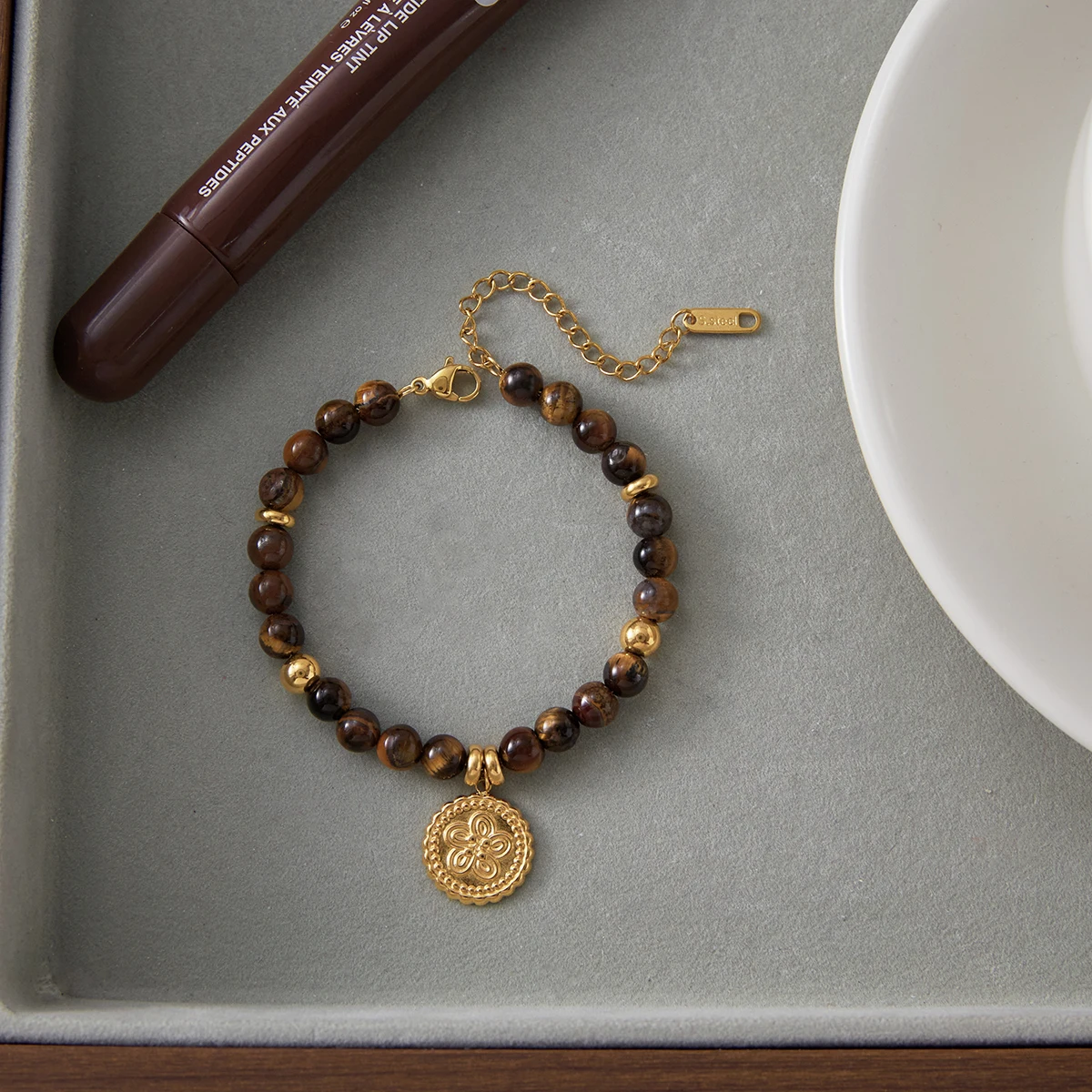 - Includes polished tiger’s eye natural stone beads with brown, gold, and darker streaks, adding earthy warmth. The beads are round and smooth, enhancing both style and comfort.