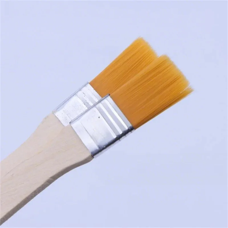 - Flat, narrow, densely packed synthetic fiber head in a light orange hue for gentle cleaning of intricate watch parts.