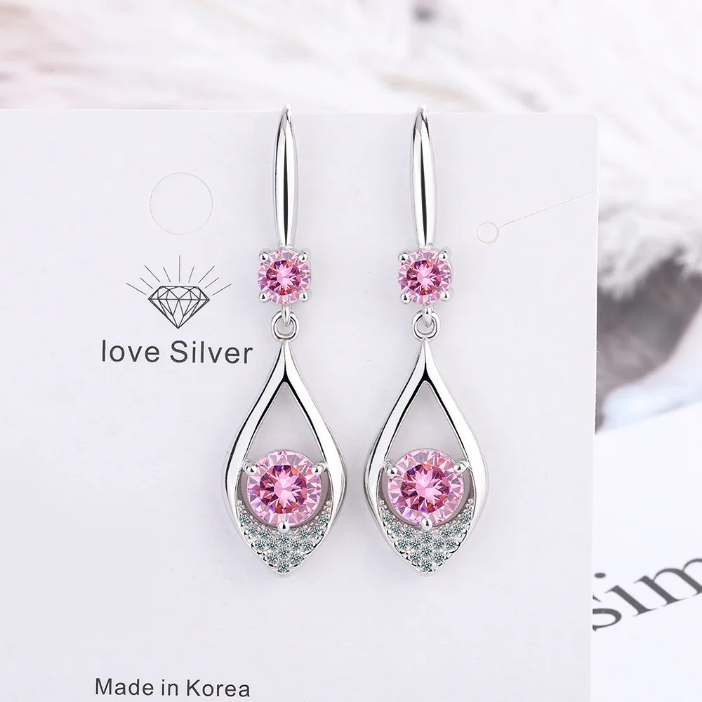 Elevate your elegance with these small water drop-shaped twist earrings crafted from genuine 925 sterling silver, accentuated with sparkling cubic zirconia stones. Available in chic color options—blue, pink, and white—each pair features a trendy drop design perfect for any season or occasion, including parties, office wear, Valentine’s Day, or casual outings. The earrings are stamped with S925 to ensure sterling silver quality and designed to add a touch of feminine sophistication to your look. Versatile and stylish, they make an ideal gift for loved ones or a special treat for yourself, seamlessly combining modern fashion with timeless sparkle.