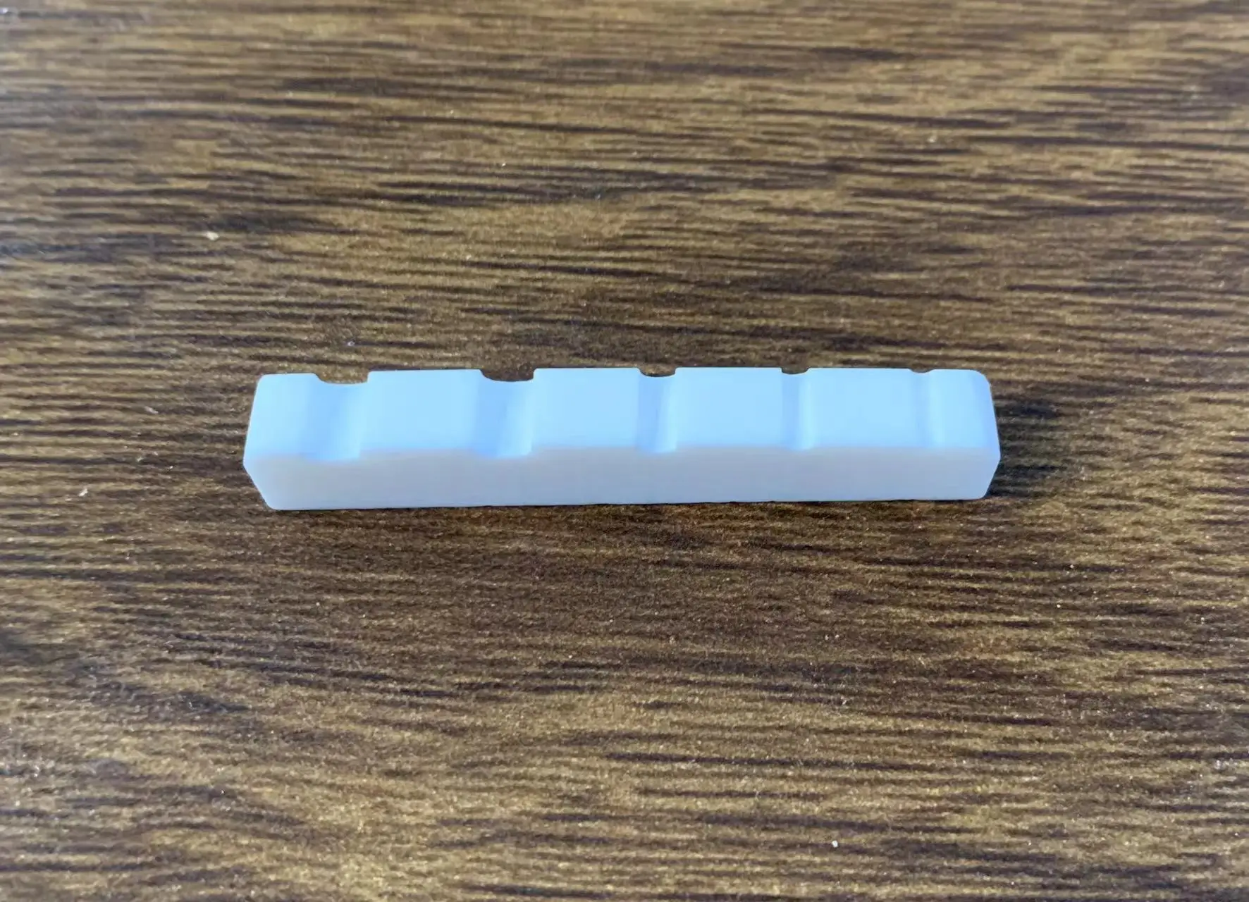 - The top surface has precisely cut, evenly spaced grooves designed to secure strings effectively, improving tone clarity and sustain during play.
