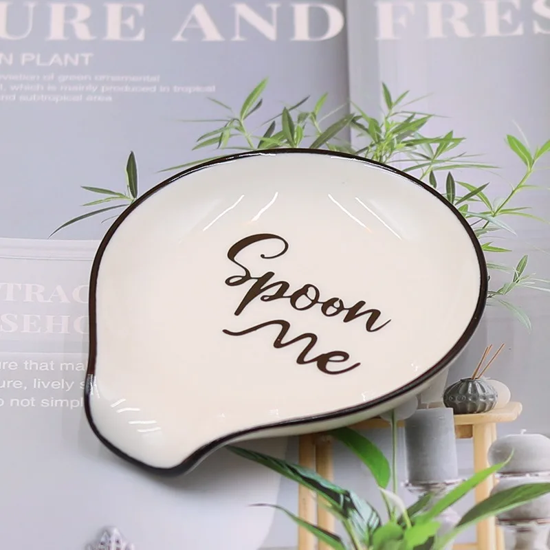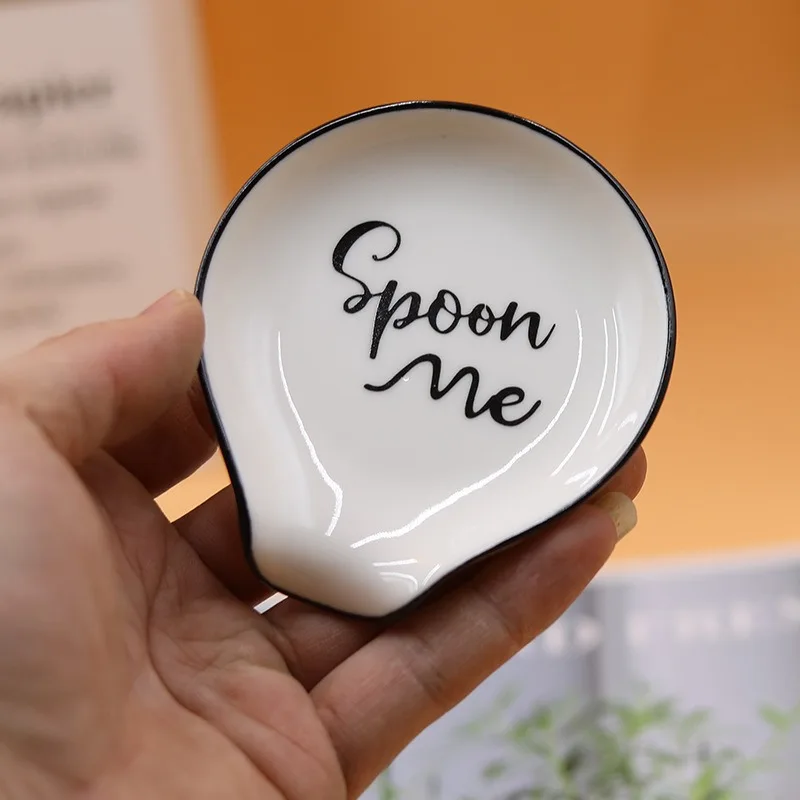 Elevate your kitchen organization with this elegant mini ceramic spoon holder, measuring approximately 9.8 cm in length, 9 cm in width, and 1.8 cm in height. Crafted from high-quality ceramic, it features a sleek, glossy white surface with a subtle black rim accent. The playful “Spoon me” inscription adds a charming touch to its minimalist design, making it both functional and stylish. Available in “No Pattern” or “Spoon me” styles, this eco-friendly piece is perfect for holding coffee or soup spoons, keeping your countertop tidy and adding a whimsical element to your kitchen decor.