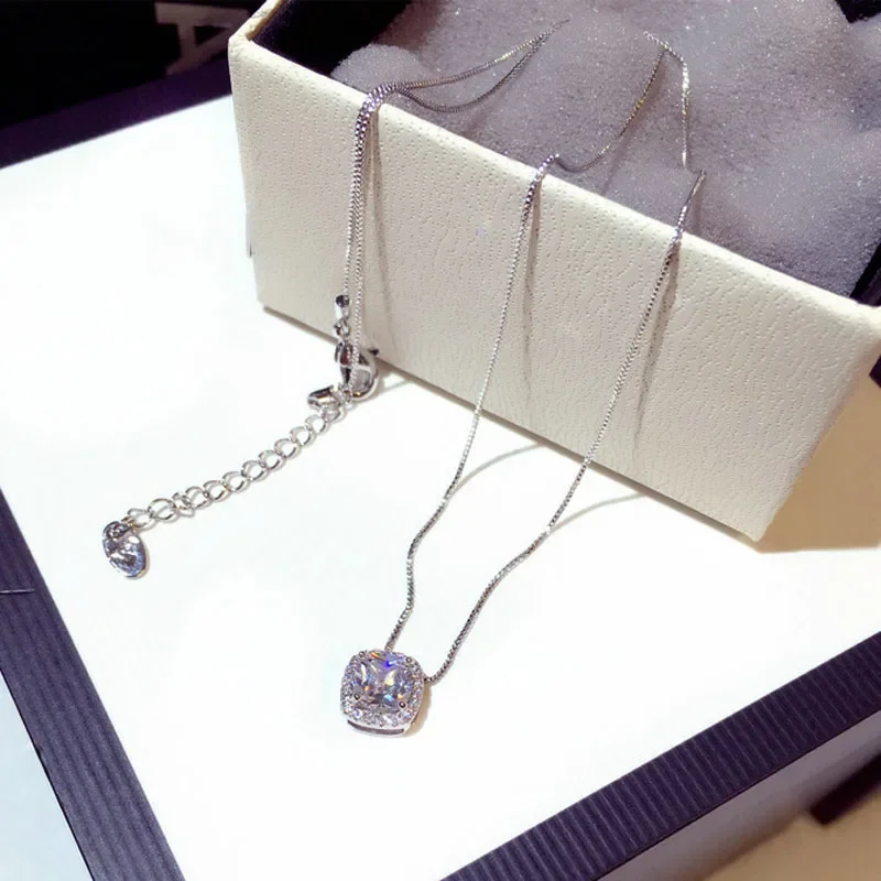Imagine adding a touch of charm and sophistication to your everyday look with this beautiful women’s collarbone necklace. Crafted with a delicate 45cm silver-colored link chain, it offers a polished, smooth finish and a consistently fine link pattern. The centerpiece is a stunning square-shaped pendant, softly rounded at the edges, showcasing a gleaming 1-carat zircon stone that sparkles brilliantly with exceptional clarity. Available in both silver and warm rose gold tones, this necklace combines romance and elegance effortlessly. Weighing just 1.55 grams, it provides a lightweight, comfortable fit that is perfect for daily wear or special occasions. Its versatile style complements a variety of outfits, making it an ideal gift for loved ones or a personal treat.