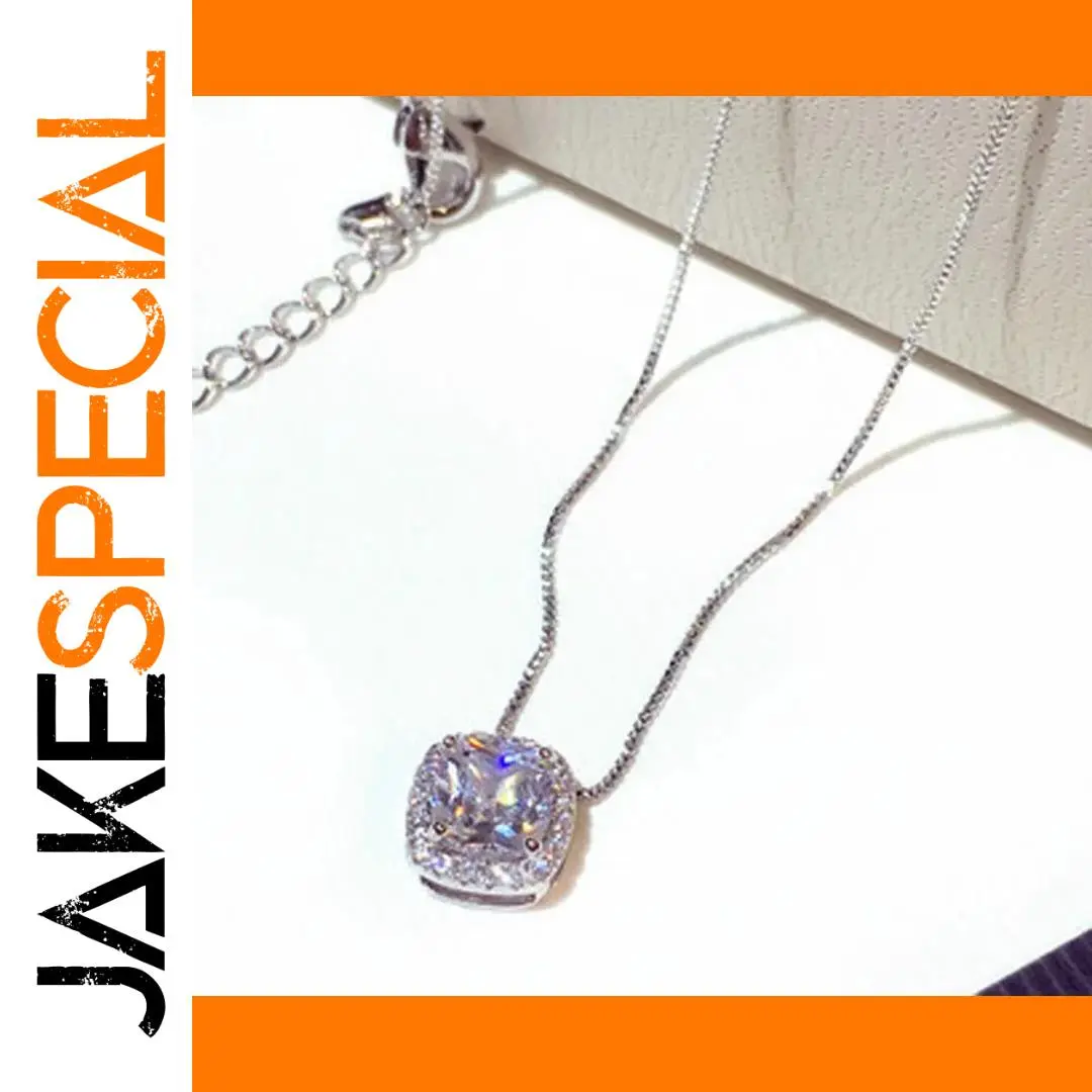 - Centerpiece is a square-shaped pendant with softly rounded edges, elegantly set with a 1-carat zircon stone for dazzling brilliance and high clarity.