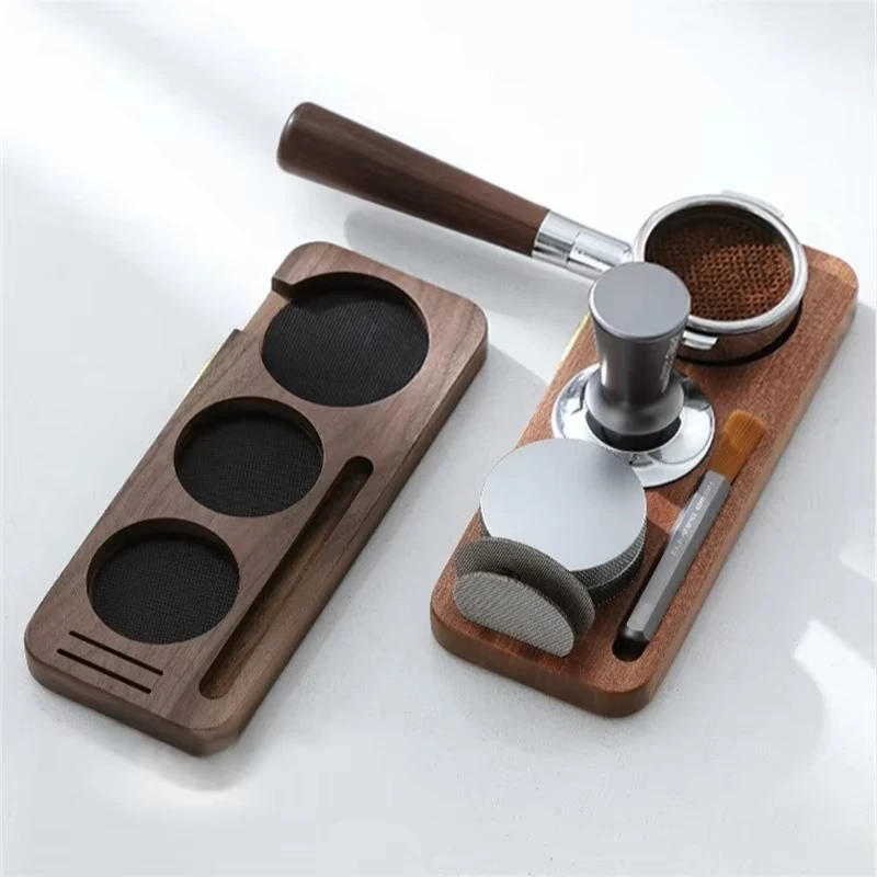 Experience the perfect blend of style and functionality with this finely crafted espresso station stand. Made from premium Beech, Walnut, or Sapele wood, it showcases warm, natural tones and smooth finishes that add sophistication to your coffee setup. Its minimalist design features rounded edges and a polished surface, emphasizing artisanal craftsmanship. The stand is thoughtfully designed to hold a powder dispenser, tamper, and handle, making your espresso-making routine seamless. Equipped with a removable silicone anti-slip base, it provides excellent stability and prevents slipping during tamping or handling. Lightweight yet durable, this multifunctional station elevates your coffee experience while adding a touch of elegance to your countertop.