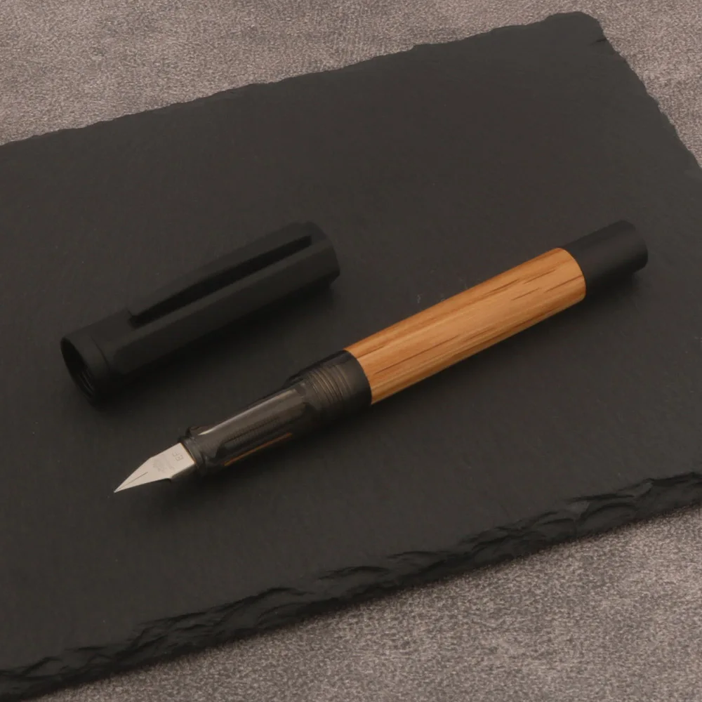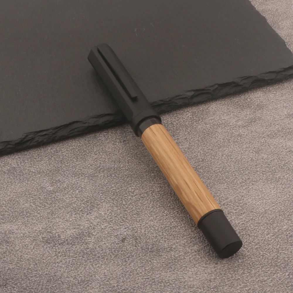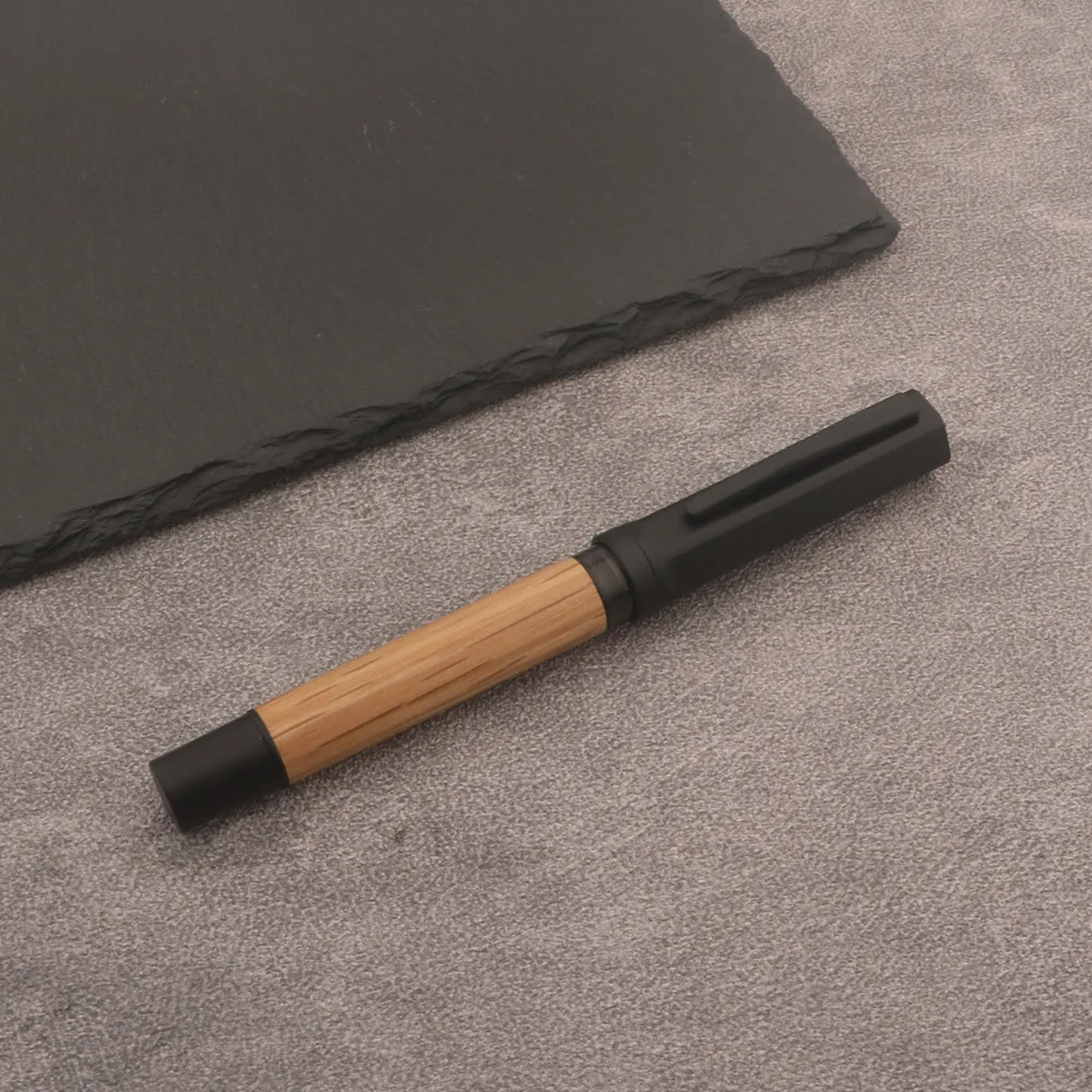 - The cap boasts a smooth, matte black finish, providing a modern aesthetic that complements the natural wood body while protecting the nib when not in use.
