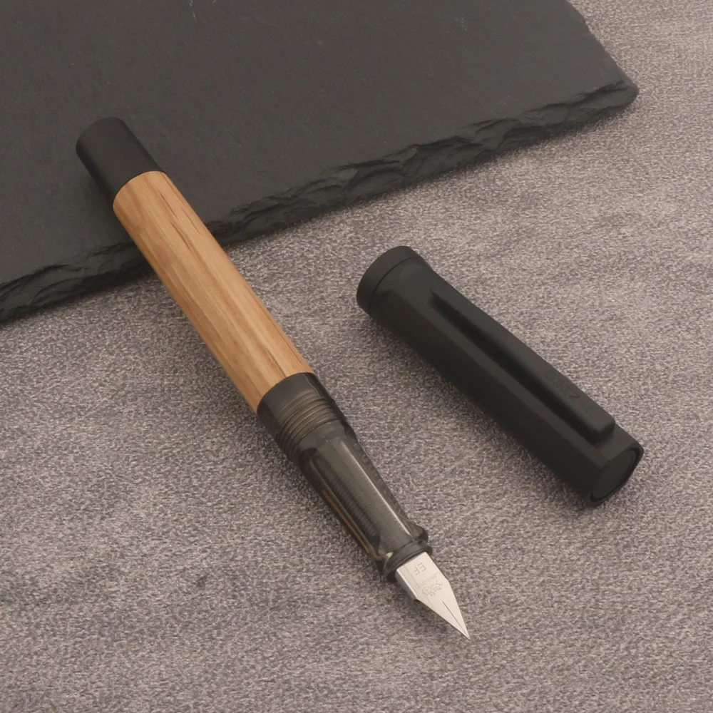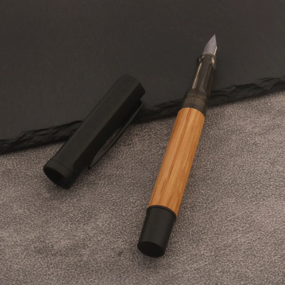 Experience the timeless elegance of this wooden fountain pen, expertly crafted for sophisticated writing. Its natural wood finish offers an earthy, refined aesthetic that complements both professional and personal settings. Designed for comfort and precision, this pen features a sleek stainless steel nib available in EF (Extra Fine) and F (Fine) sizes, perfect for detailed calligraphy or everyday writing. The transparent ink feed section allows for easy refilling, ensuring smooth, uninterrupted use. The matte black cap provides a modern contrast, enhancing the pen's minimalist yet classy appearance. Whether you're drafting letters, signing documents, or indulging in calligraphy, this versatile pen elevates your writing experience with style and reliability.