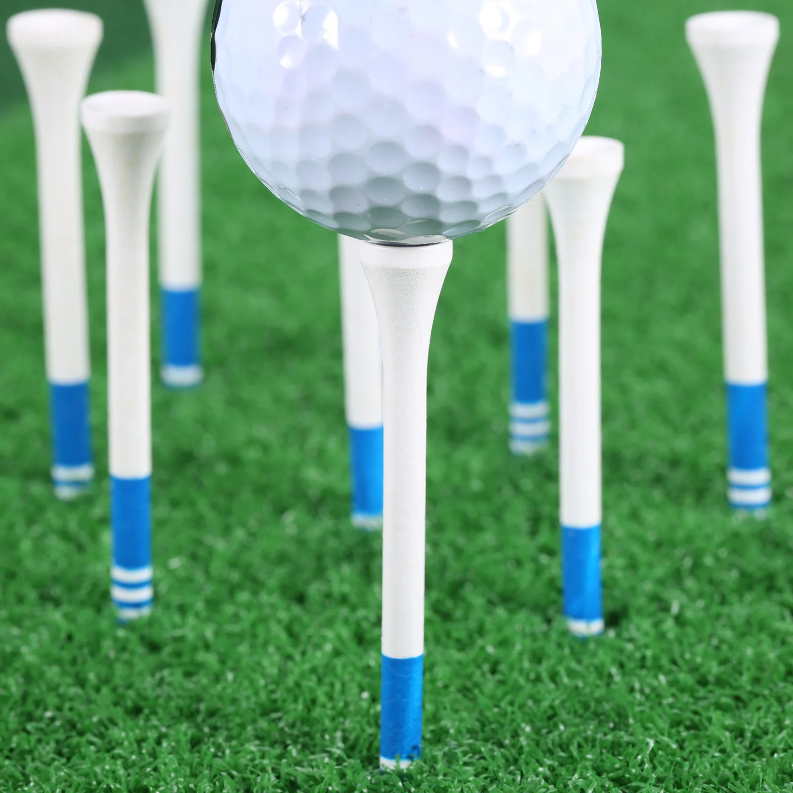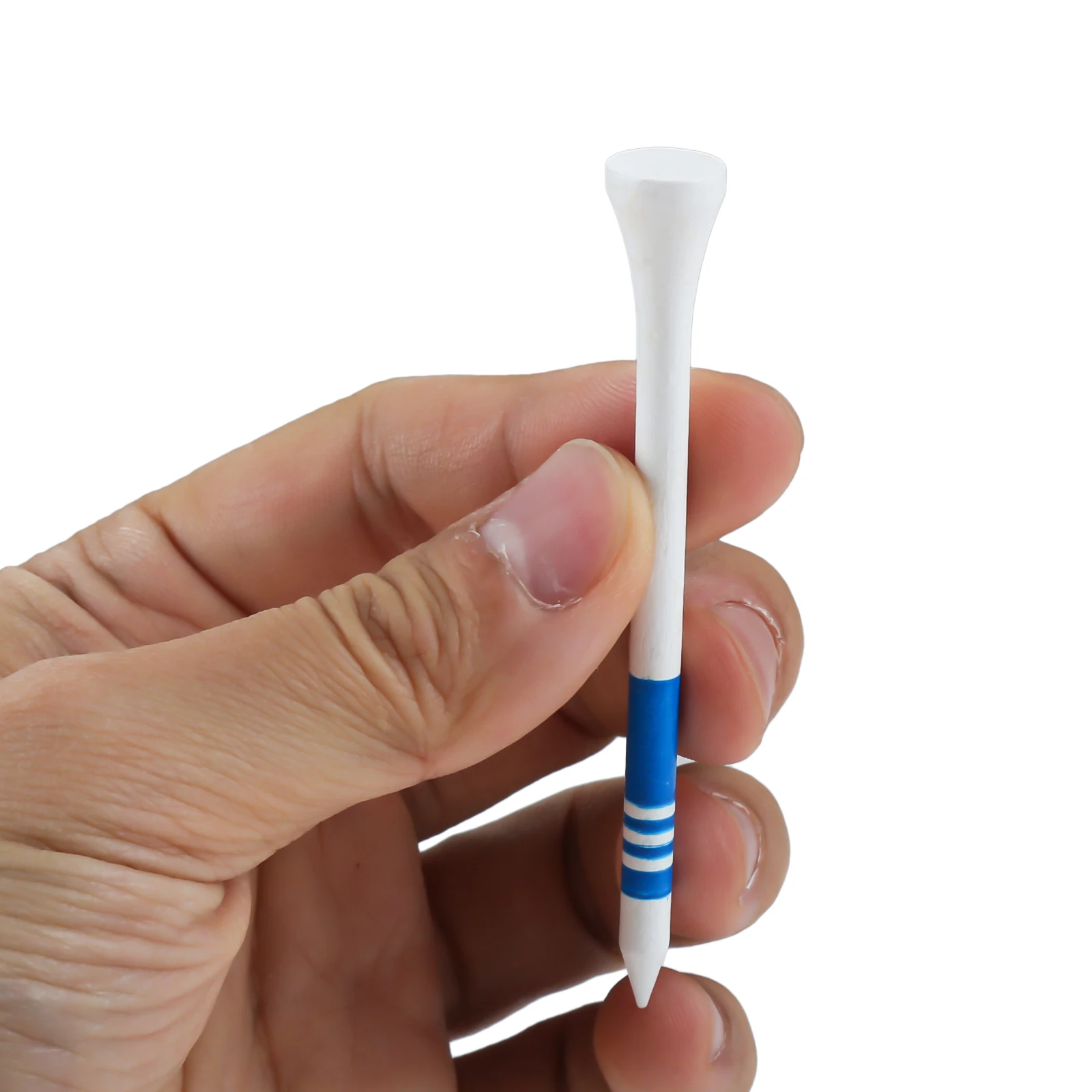 Enhance your golf practice with these 50 lightweight, durable wooden golf tees measuring 83mm (3 1/4″), featuring a sleek white finish with a blue stripe for easy visual alignment. Designed to protect your club head and promote consistent, optimal tee height, these tees are crafted from high-quality wood and free from high concern chemicals. Ideal for practice and casual play, they offer a reliable, stylish addition to your golf accessories, helping you achieve better performance on the course. With their polished, minimalist design, these tees combine craftsmanship and functionality, making them a must-have for serious golf enthusiasts.