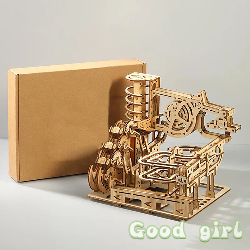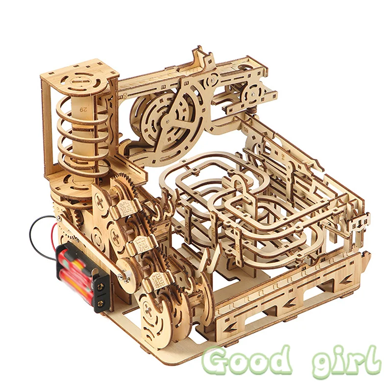 Experience the engaging elegance of this wooden marble run kit, measuring 210mm by 160mm by 180mm, with a sophisticated layered spiral design crafted from smooth, natural plywood. Featuring precise laser-cut pathways with gentle slopes and curves, elevated by small supports, it offers a seamless, double-layered track for marble fun. Built with rigorous craftsmanship, the set ensures smooth operation with high-quality bearings and fine axes, showcasing clear joints and connectors. Its minimalist, modern aesthetic combines organic warmth with technical precision, making it an ideal challenging yet enjoyable model for enthusiastic builders aged 14 and above, fostering creativity, engineering skills, and interactive entertainment.