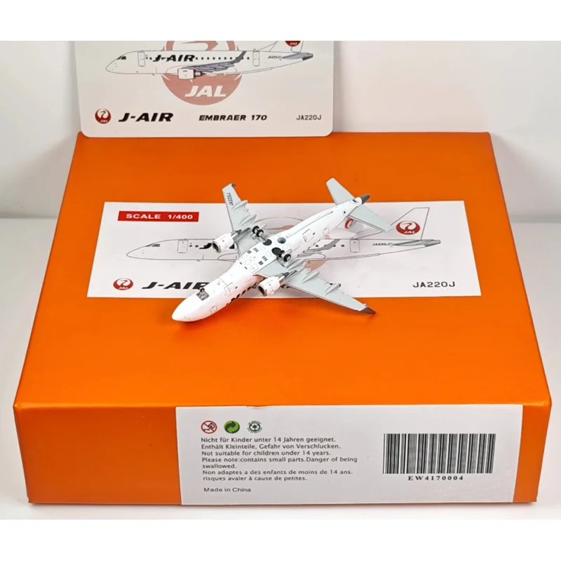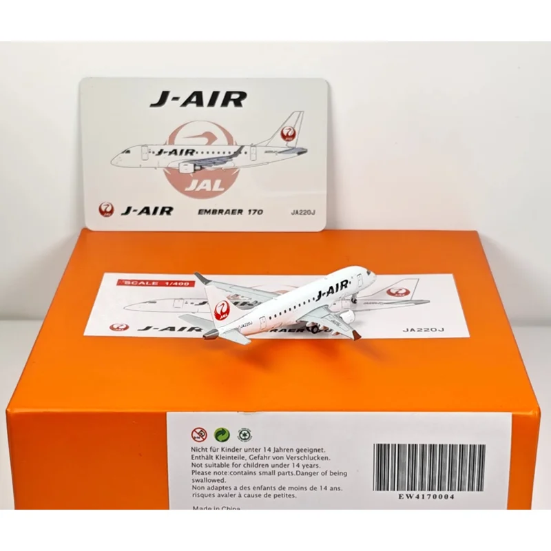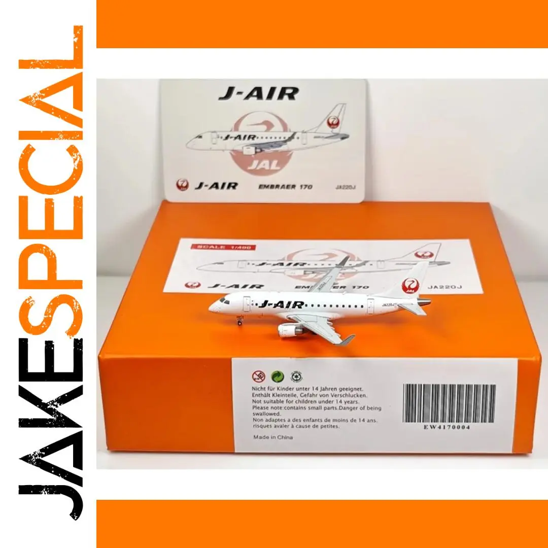 This JC Wings Diecast 1:400 Scale ERJ-170-100STD aircraft model is a must-have for aviation enthusiasts and collectors alike. This intricately detailed model, representing the J-AIR branding under Japan Airlines, features an authentic white exterior highlighted with bold “J-AIR” lettering and the iconic JAL logo on its tail. The model measures approximately 7.48 cm in length with a wingspan of 6.5 cm, making it a perfect addition to any display. Crafted from durable metal and plastic, this replica embodies the elegance of the Embraer 170 aircraft. Whether you're adding to your collection or showcasing it as a decorative piece, this model promises to impress.