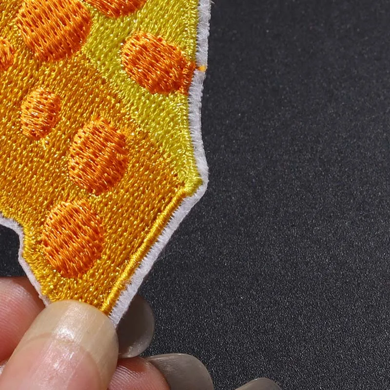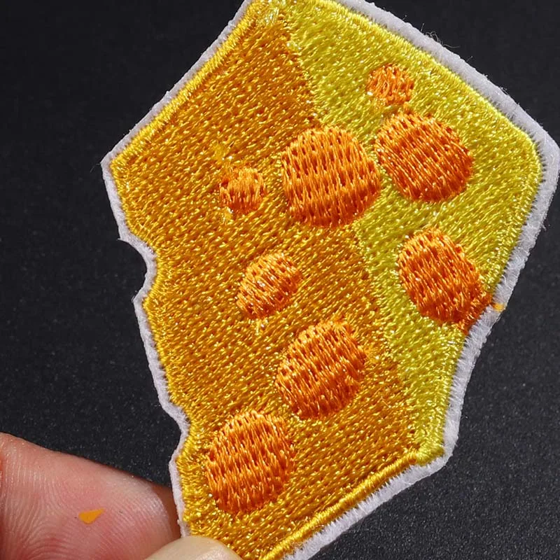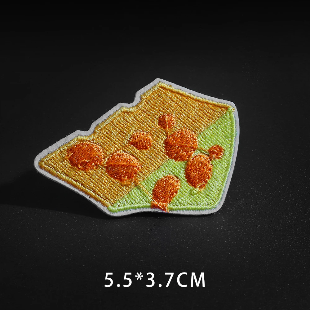 Transform your clothing with this delightful embroidered cheese patch! Measuring 5.5 cm in height and 3.7 cm in width, this vibrant patch features a cheerful yellow and orange color scheme, perfectly emulating the look of a delicious piece of cheese. With its eco-friendly and non-woven fabric, this handmade patch not only adorns your wardrobe but also reflects your love for creativity. The 3D design, detailed with orange holes, brings an irresistibly playful touch to any DIY project. Easy to apply with either sewing or iron-on methods, you'll soon be showcasing your unique style on T-shirts and more!