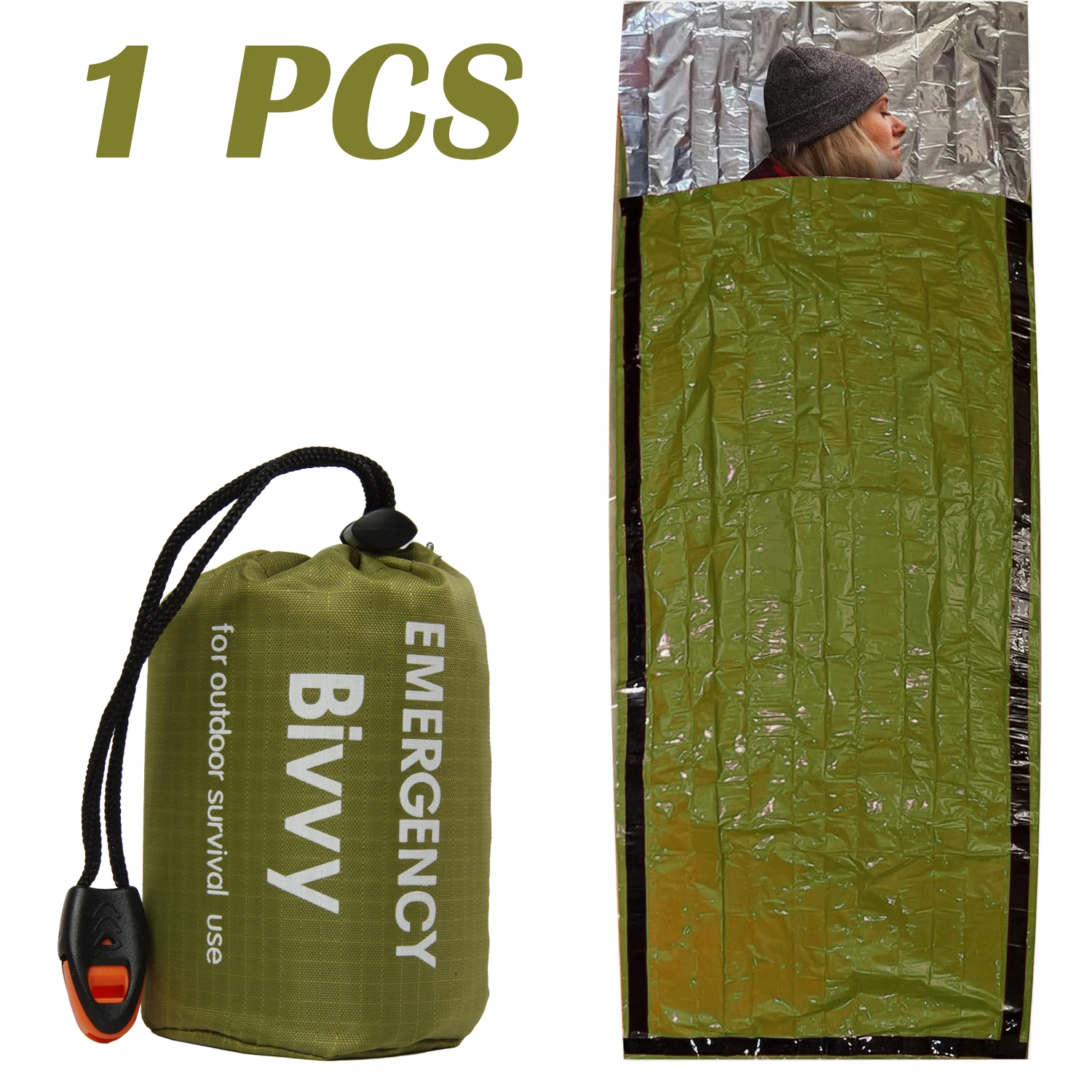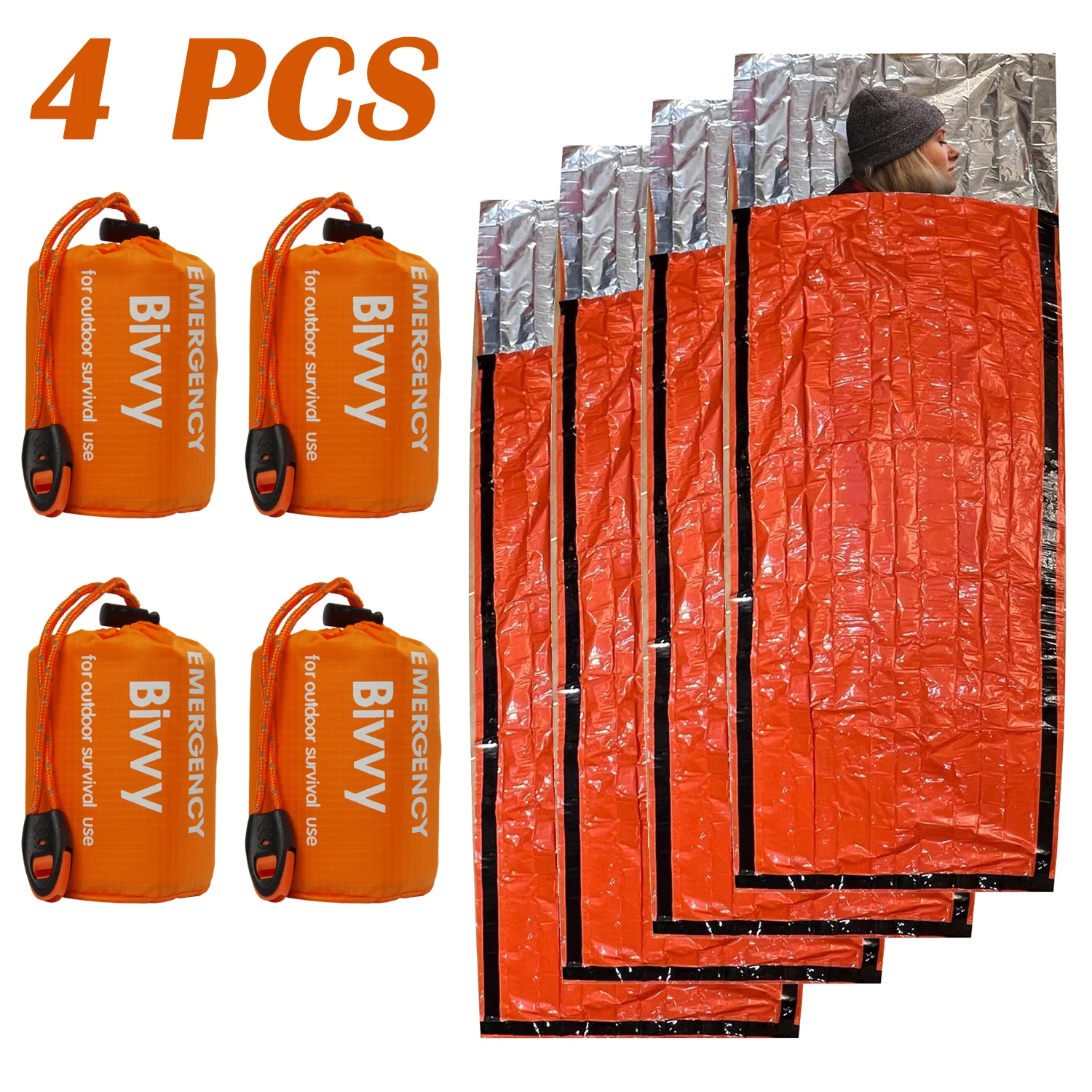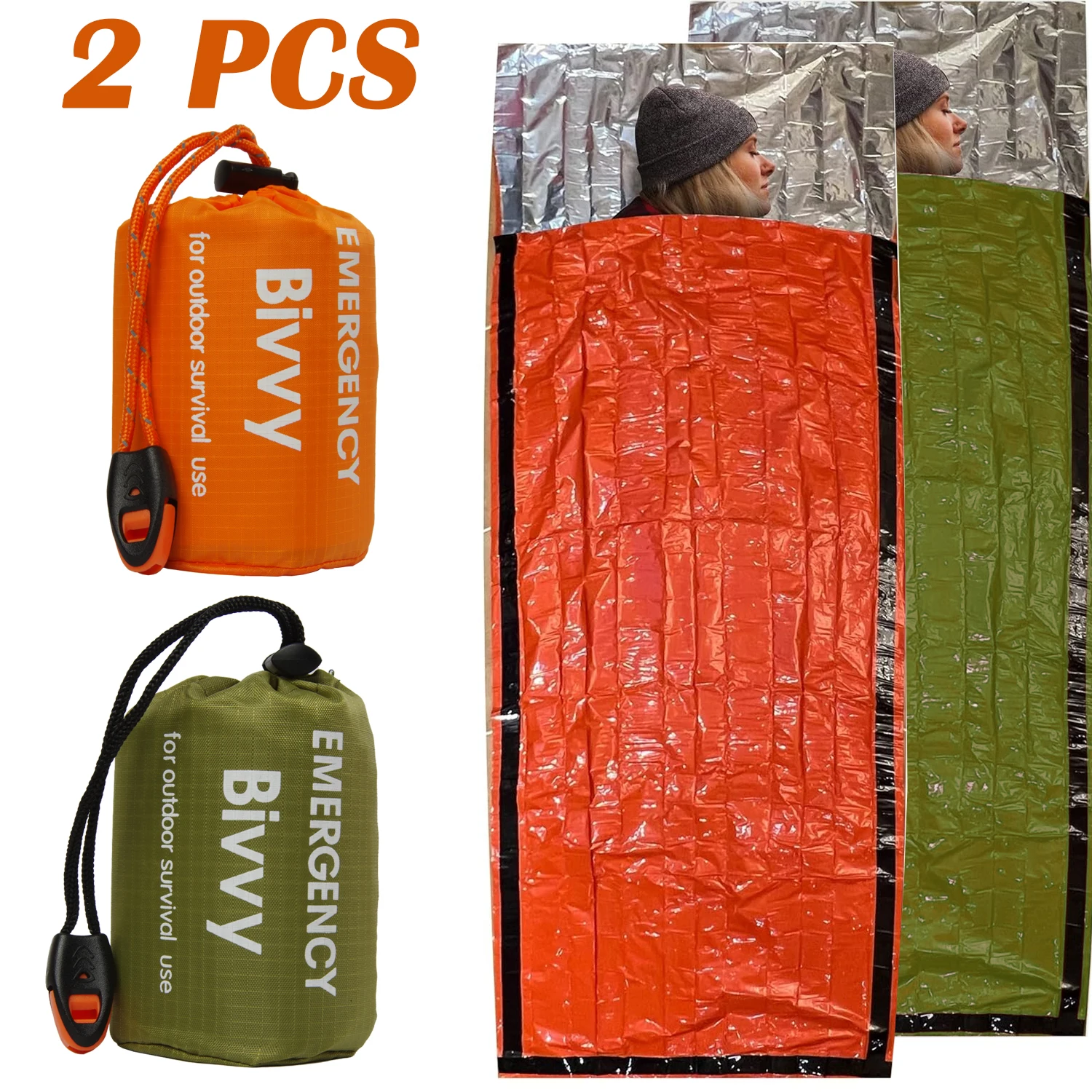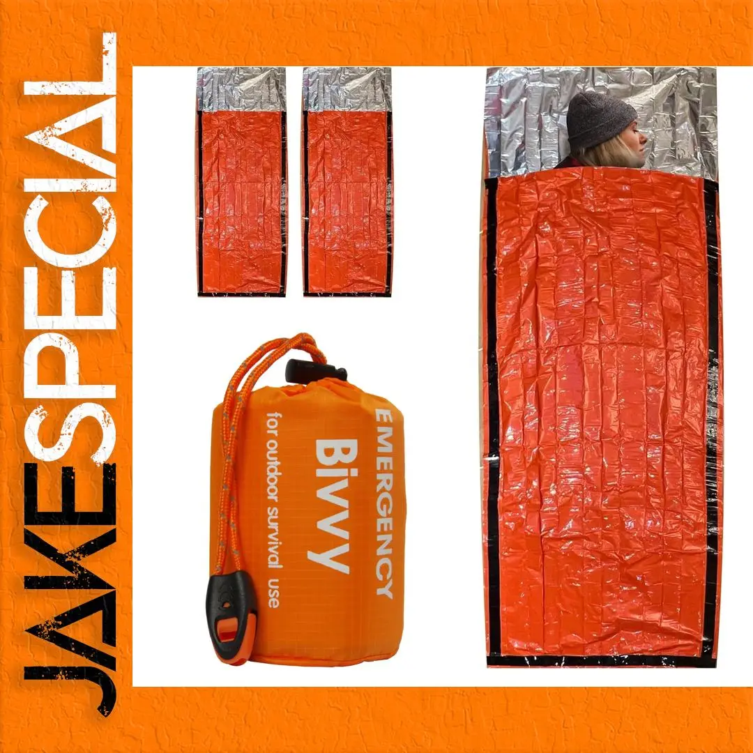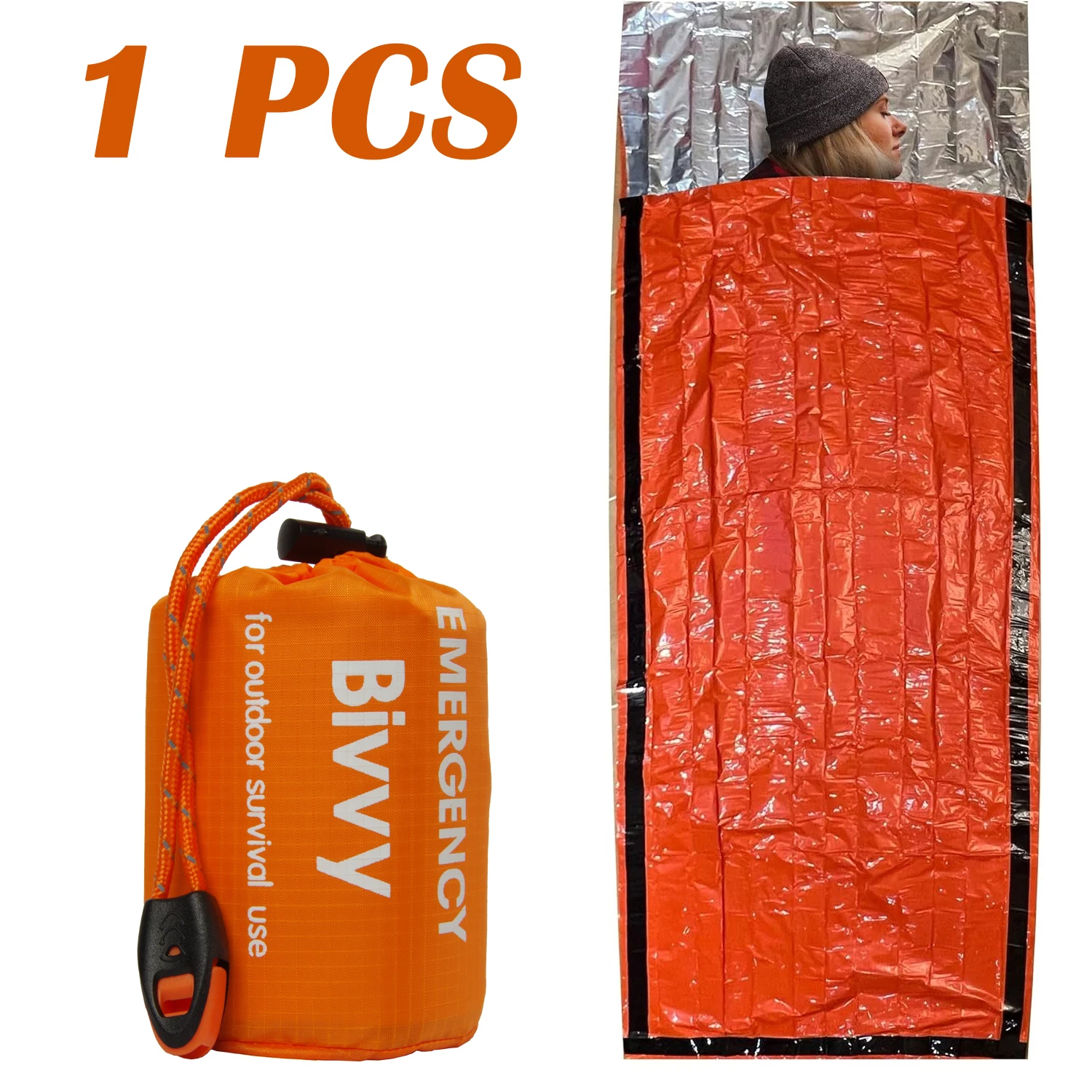 Experience peace of mind with our Emergency Sleeping Bag, measuring 84″ in length and 36″ in width, designed for adults up to 1.8 meters tall. Constructed from durable insulating Mylar material with five layers—Protective Film, Anti-scratch Coating, Antioxidant Coating, Aluminium Coating, and PET Base—this sleeping bag provides exceptional heat retention, tear resistance, and weather protection. It operates efficiently in temperatures between 5°C to 15°C and features a bright orange exterior for high visibility. An upgraded head cover ensures added warmth, while a 120 Decibel whistle enhances safety. Its compact design makes it perfect for camping, hiking, and outdoor adventures.