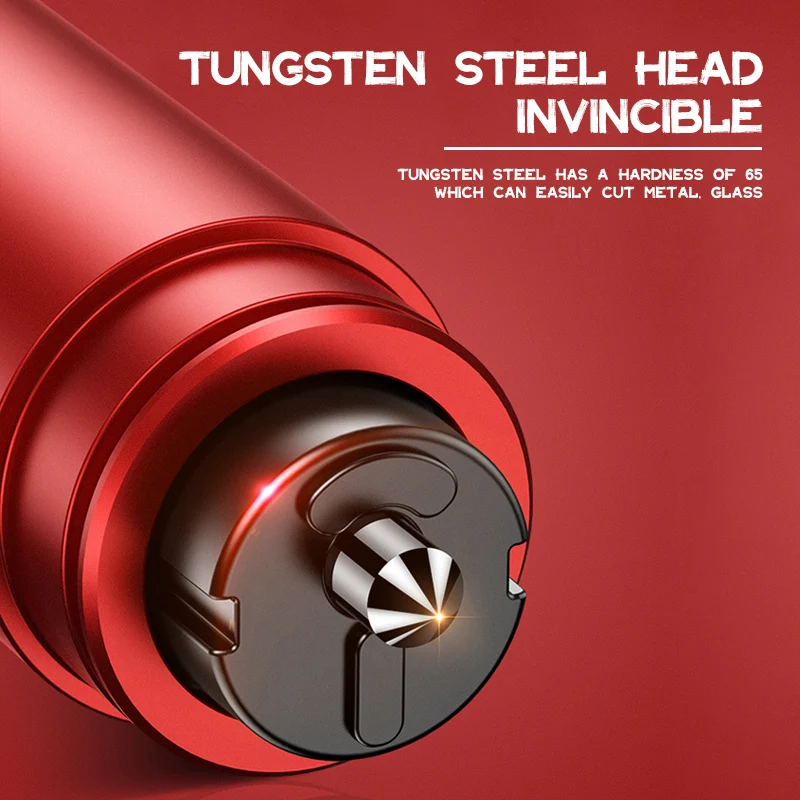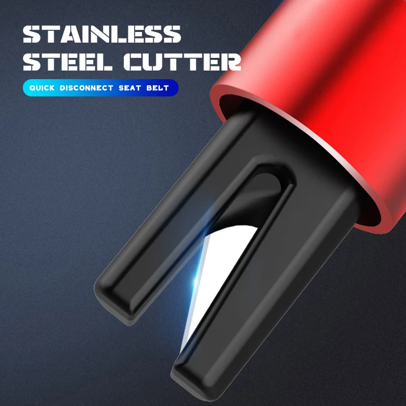 Ensure your safety with this compact, corrosion-resistant zinc alloy emergency safety hammer, measuring 9.7 cm long, 3.2 cm wide, and 2.1 cm high. Featuring a sleek matte finish in black, red, or silver, it includes a black rubber or plastic cap with a red ring covering the glass-breaking tip for efficient window shattering. The textured metallic loop allows secure attachment to keyrings, lanyards, or vehicle mounts. Designed for rapid vehicle evacuation, it combines a safety hammer and seat belt cutter, making it suitable for cars, trucks, buses, trains, and ships. Its modern, minimalist style emphasizes durability, accessibility, and quick response in emergencies.