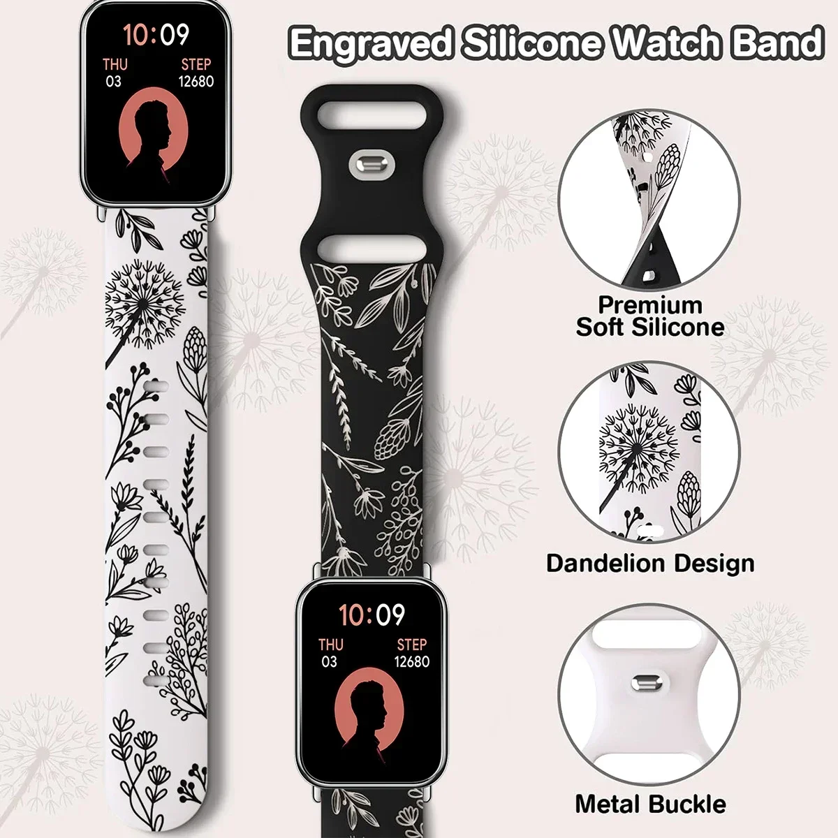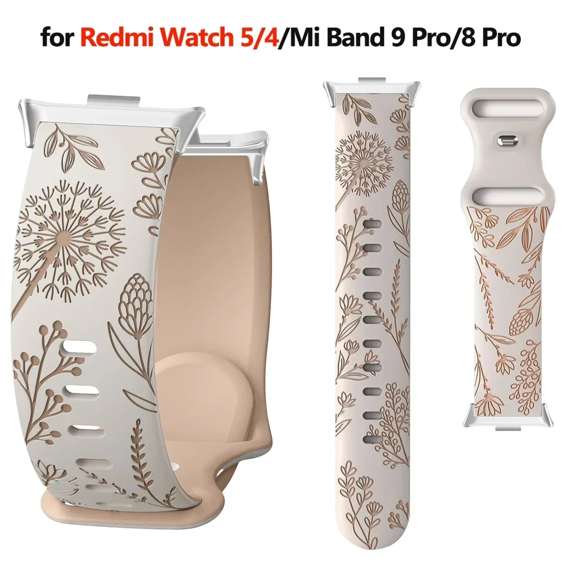Enhance your Xiaomi Mi Band 9 Pro or Redmi Watch 4/5 with this engraved silicone strap, featuring a soft, comfortable feel and a stylish dandelion design. Crafted from high-quality silicone, it offers durability and a secure fit, making it perfect for everyday wear. Whether you’re hitting the gym or going about your day, this unisex accessory adds a touch of elegance and personalization to your smartwatch. Easy to install and designed to blend seamlessly with your device, it transforms the look of your smartwatch while providing reliable comfort. Upgrade your accessory game and enjoy a fresh, fashionable look every day.