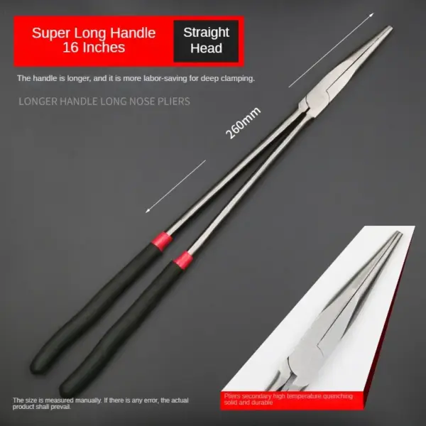 These professional needle nose pliers are the ultimate tool for achieving precision in your projects. Crafted from durable carbon steel, their robust construction ensures longevity and resistance to wear. The ergonomic handle provides you with a comfortable and slip-resistant grip, allowing for meticulous control during use. Imagine effortlessly reaching into tight spaces or performing repairs with confidence. Whether you’re a DIY enthusiast or a professional mechanic, these pliers will become an indispensable part of your toolkit, guiding you through every task with ease and efficiency.