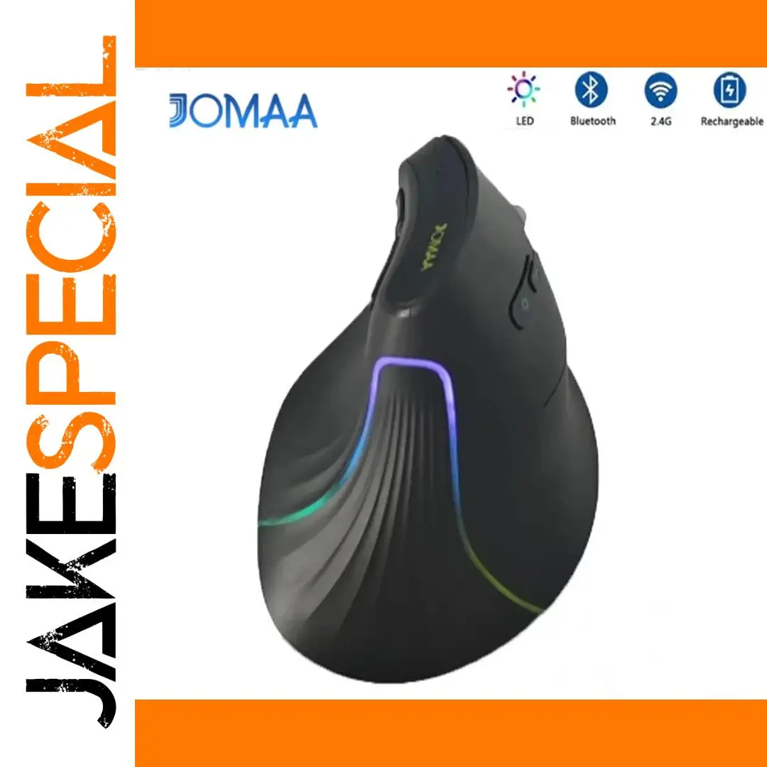 Experience a new level of comfort and style with this high-tech vertical wireless mouse. Designed to support a natural hand position, it reduces arm fatigue during long hours of use. Its sleek matte black finish with textured grip ensures precision and control. The dynamic RGB lighting along the sides and bottom adds a vibrant, customizable glow that emphasizes its modern aesthetic. Equipped with seven buttons, an optical scroll wheel, and a thumb-controlled trackball, this mouse combines functionality with style, making your workspace look cutting-edge. Its dual-mode Bluetooth 5.0 and 2.4GHz connectivity allow seamless switching between multiple devices. The rechargeable 500mAh battery lasts about a month on a full charge, giving you uninterrupted productivity in a durable, ergonomic package.