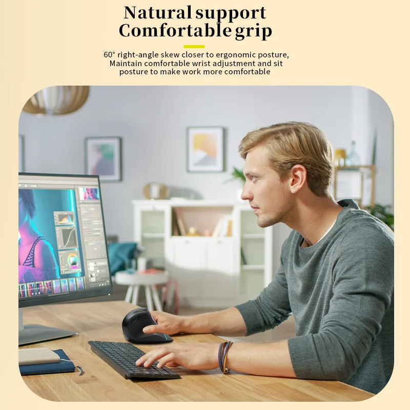 Upgrade your workspace with this innovative mouse that blends ergonomic comfort with modern technology. Imagine working efficiently without wrist fatigue, enjoying vibrant lighting, and seamlessly switching devices with ease. Its sleek design and advanced features make it an invaluable tool for professionals, gamers, or anyone who spends hours at the computer. With reliable wireless connectivity, customizable settings, and a stylish appearance, this mouse transforms your daily tasks into a more enjoyable experience. Make the smart choice today and elevate your ergonomic setup for better productivity and comfort.