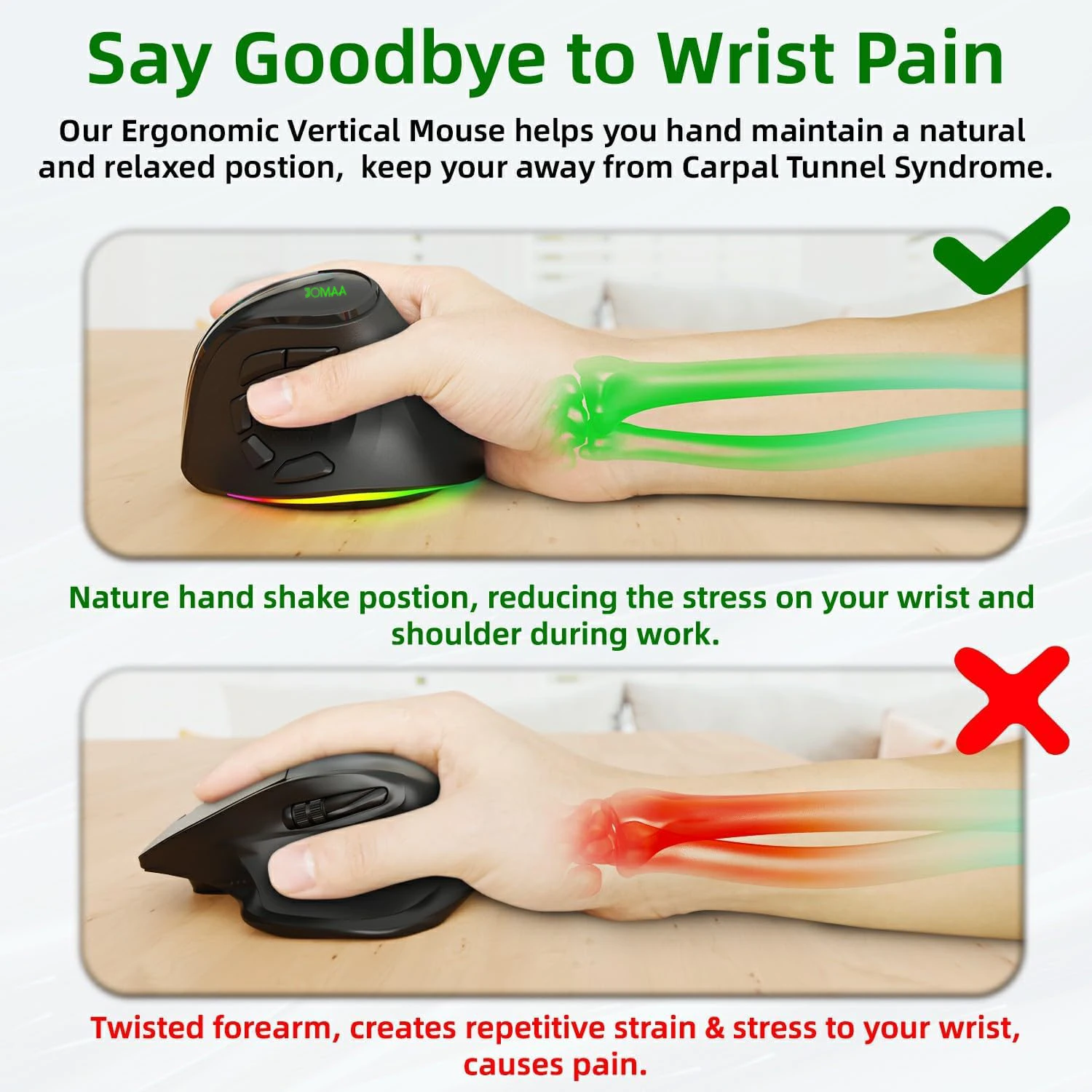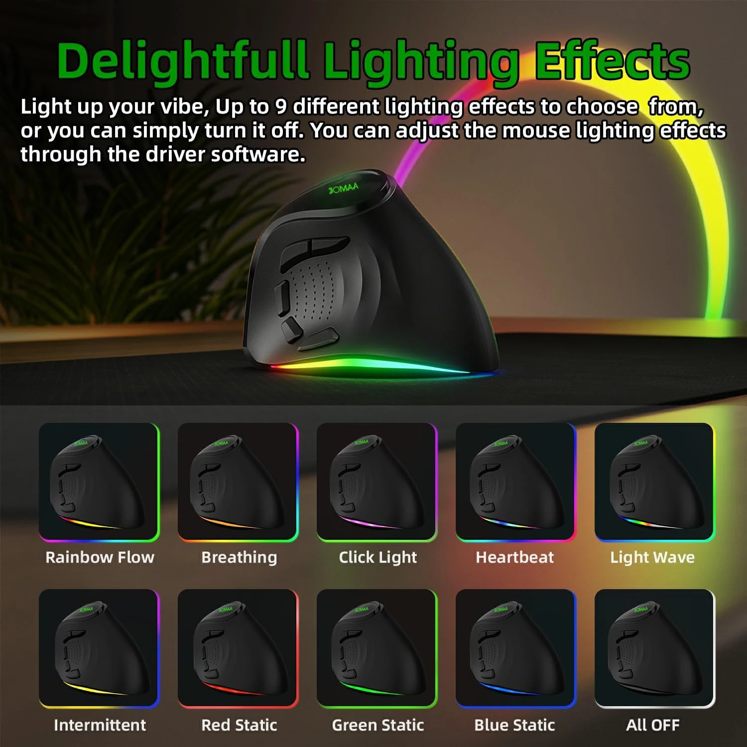 Ergonomic Wireless Mouse with RGB Lighting