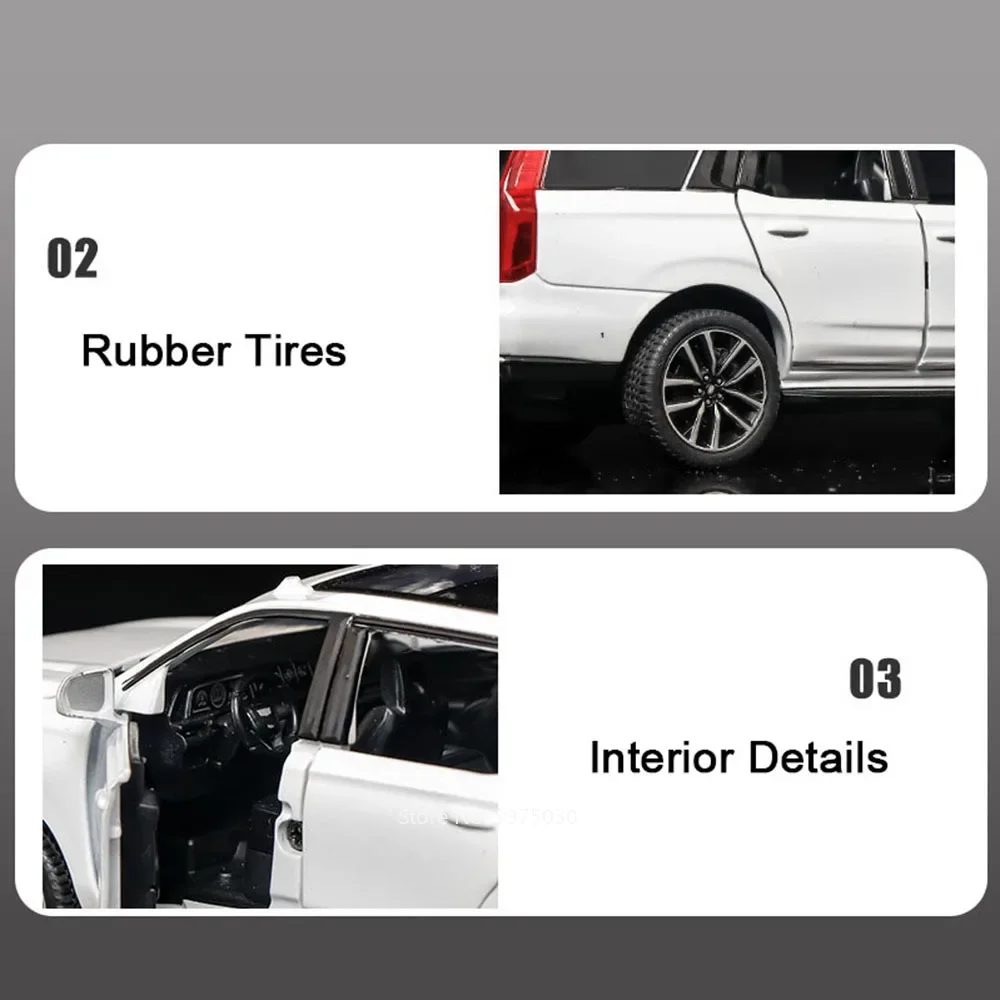 Enhance your collection with this stunning replica of the Escalade GLS580. Its impeccable details and robust construction make it a perfect gift or a prized addition to your display. Imagine admiring or showcasing this luxurious model on your shelf, capturing admiration from friends and fellow enthusiasts alike. Whether for personal collection or gifting, this high-quality miniature promises to impress with its realistic features and sleek design. Don’t miss the opportunity to own a piece of automotive elegance—order today and bring home this luxurious Escalade GLS580 miniature model!