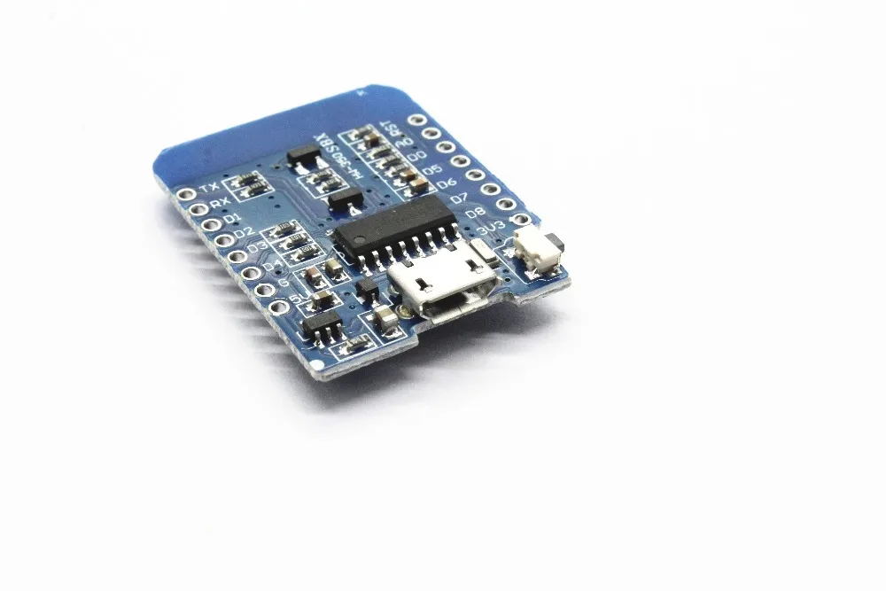 Experience seamless IoT development with this compact WiFi board, powered by the ESP-8266EX chip. Featuring 11 digital pins supporting interrupt, PWM, I2C, and one-wire protocols (except D0), along with a 3.3V analog input, it offers versatile connectivity options. The board operates at 3.3V and includes a Micro USB port for easy connection and programming. Its sleek, rectangular blue PCB with a matte finish and centrally mounted metallic WiFi chip reflects precise engineering and modern aesthetics. Perfect for customizable projects, this development board combines functionality and compact design for efficient and reliable wireless communication.