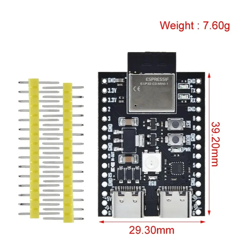 Transform your development experience with this elegant, high-quality ESP32-C3 Dual Type-C module. Its combination of sleek aesthetics and reliable technical features makes it an ideal choice for IoT enthusiasts and professional developers alike. Imagine integrating this board into your setup, confidently working on wireless connectivity projects, and enjoying its stability and stylish appearance. Don't miss the chance to enhance your innovations with this cutting-edge development board—your next big idea starts here!