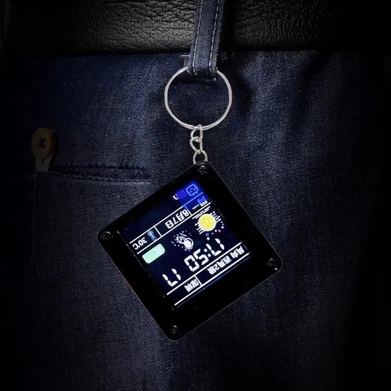 Imagine carrying a sleek, compact device that seamlessly combines practicality and style in your daily routine. This ESP32 C3-based gadget features a vibrant 1.44-inch LCD screen with a stunning 128×128 resolution, driven by the high-performance ST7735S controller. Its minimalist black square casing with rounded edges and metallic screws offers a modern, sturdy look that fits perfectly on your keychain or as a portable accessory. Whether showing weather updates, time, or short videos, this device connects effortlessly via WiFi, providing real-time information at a glance. Lightweight and portable, it’s ideal for expressing your personality while staying connected wherever you go.